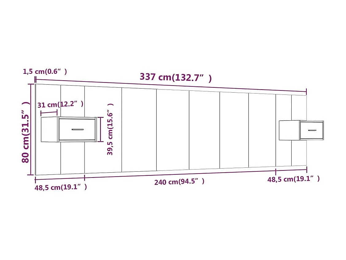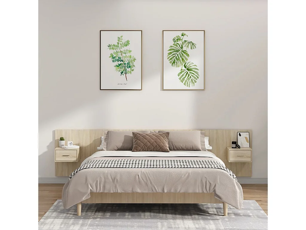 Hoofdbord met kastjes bewerkt hout sonoma eikenkleurig