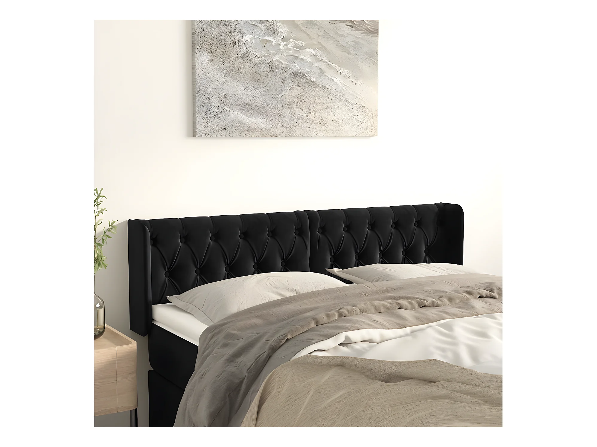 Hoofdbord met randen 163x23x78/88 cm fluweel zwart