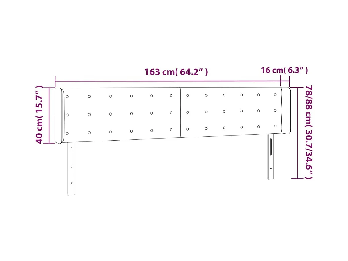 Hoofdbord met randen 163x16x78/88 cm stof donkergrijs