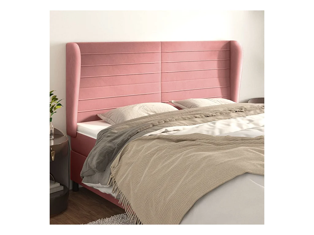 Hoofdbord met randen 163x23x118/128 cm fluweel roze