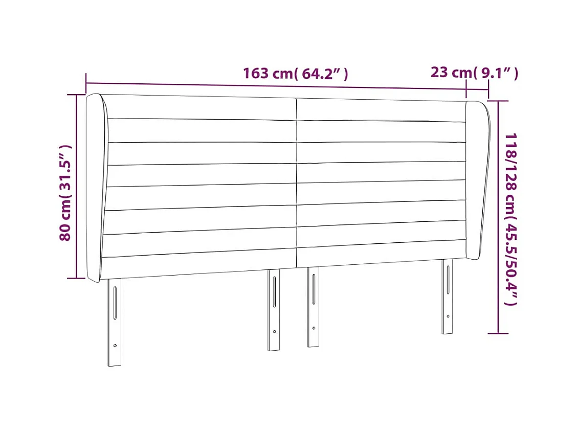Hoofdbord met randen 163x23x118/128 cm fluweel donkergrijs