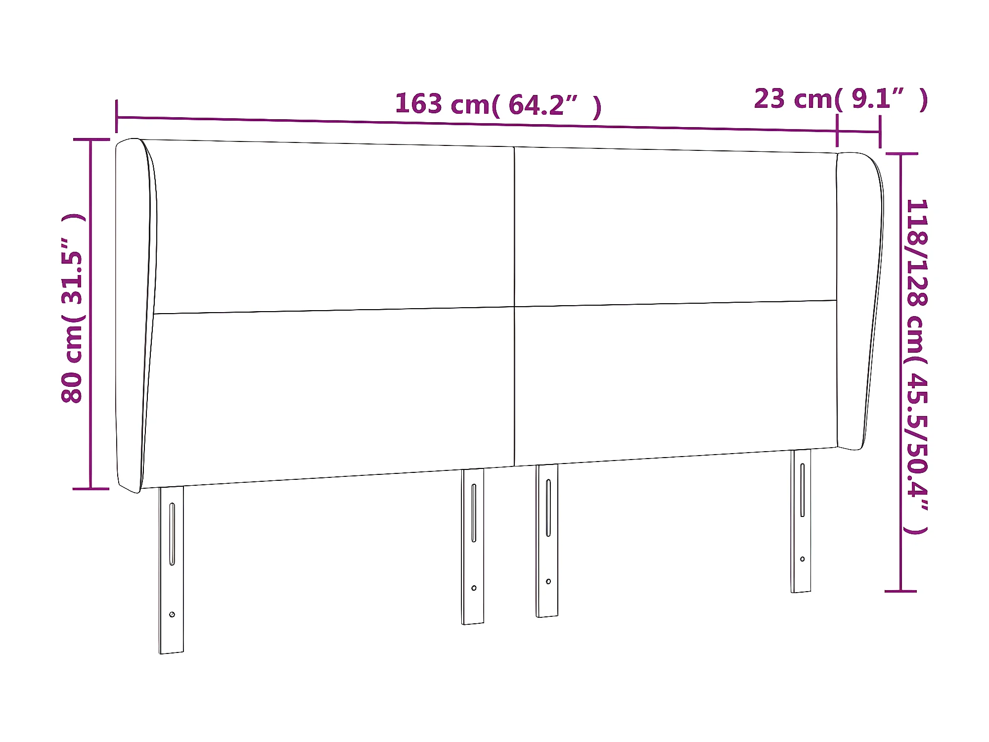 Hoofdbord met randen 163x23x118/128 cm stof blauw