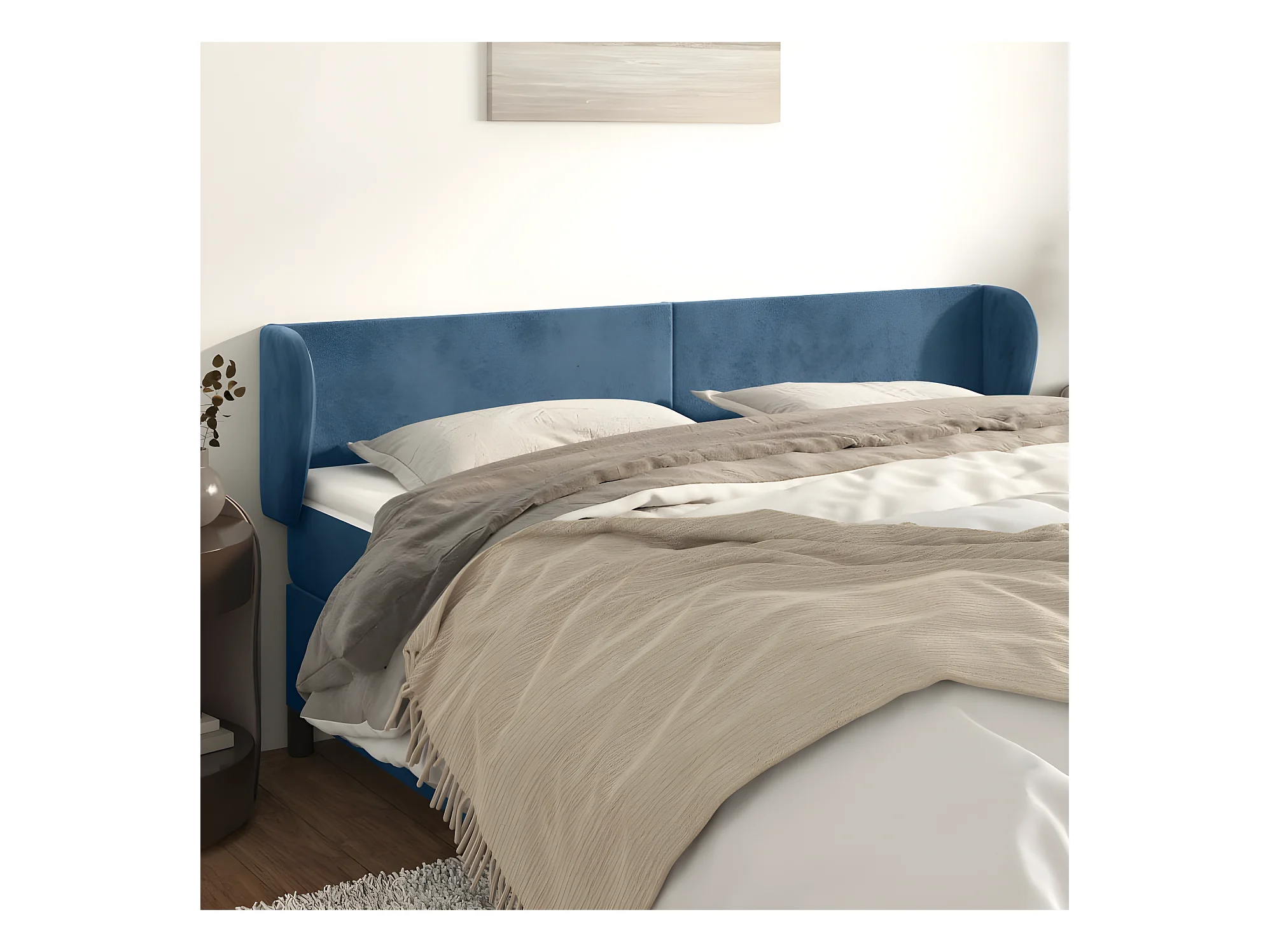 Hoofdbord met oren Donkerblauw 163x23x78/88 cm Fluweel