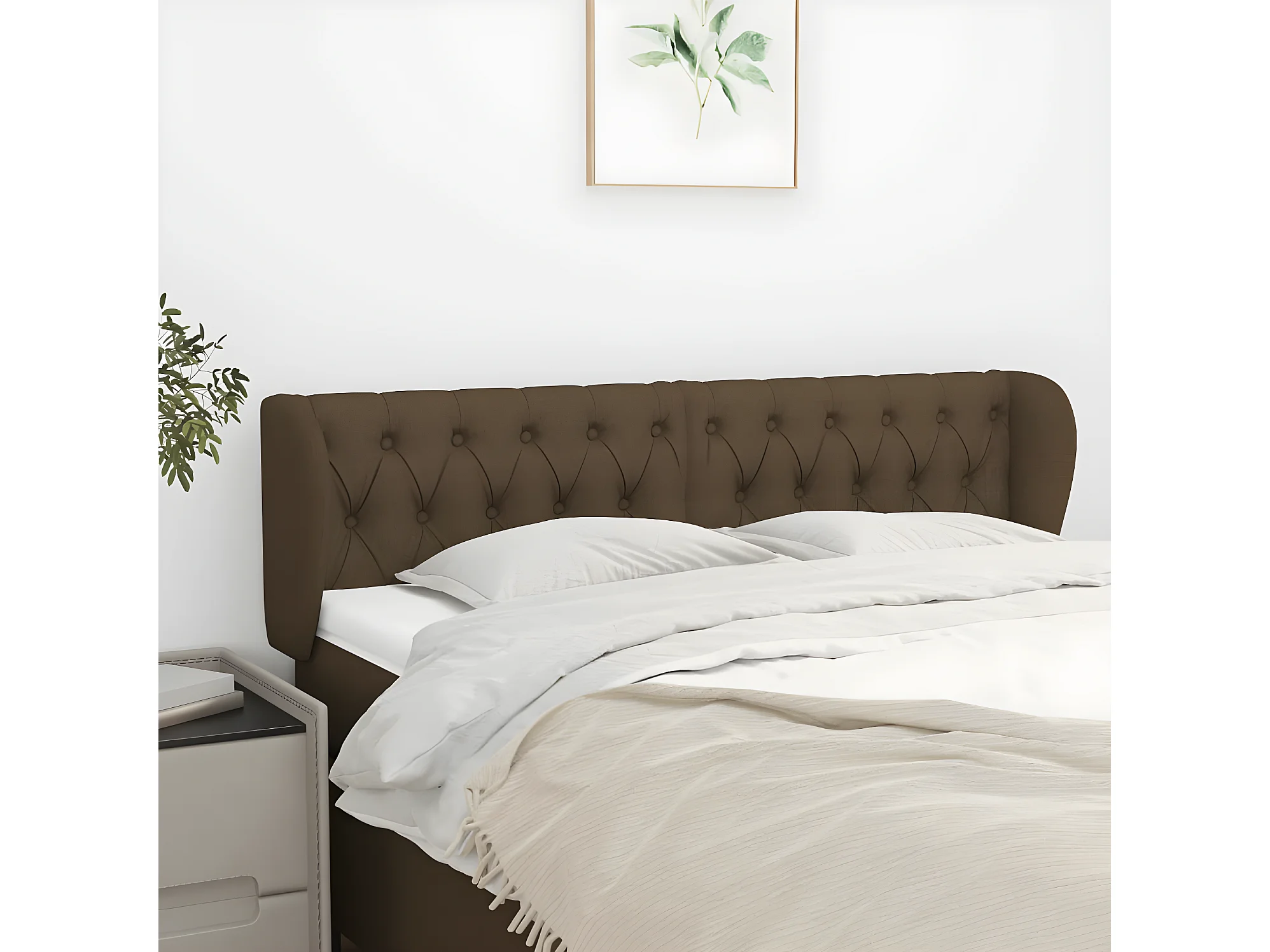 Hoofdbord met randen 163x16x118/128 cm stof donkerbruin