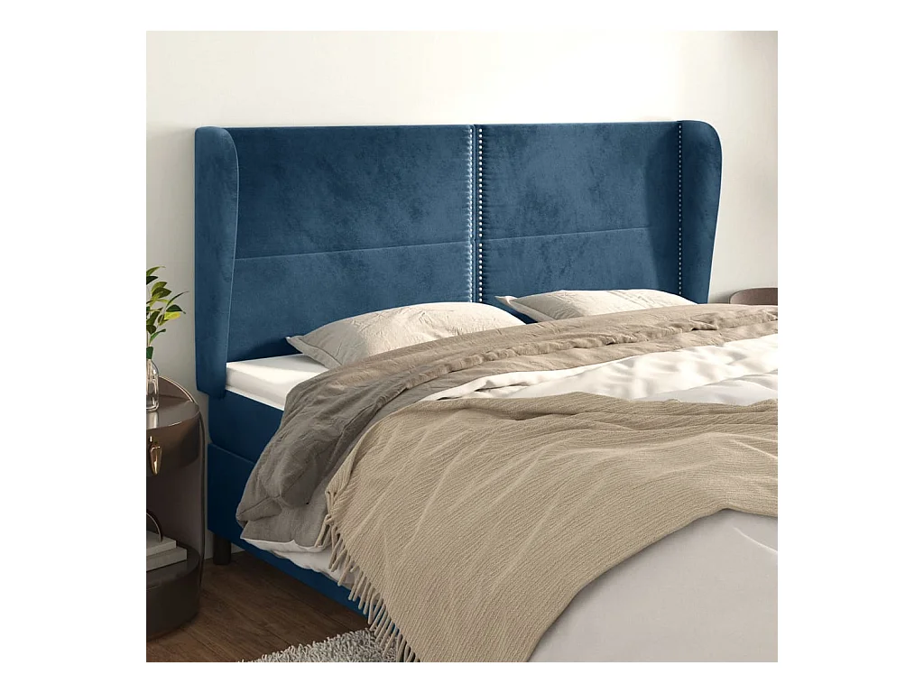 Hoofdbord met randen 163x23x118/128 cm fluweel donkerblauw NL108472
