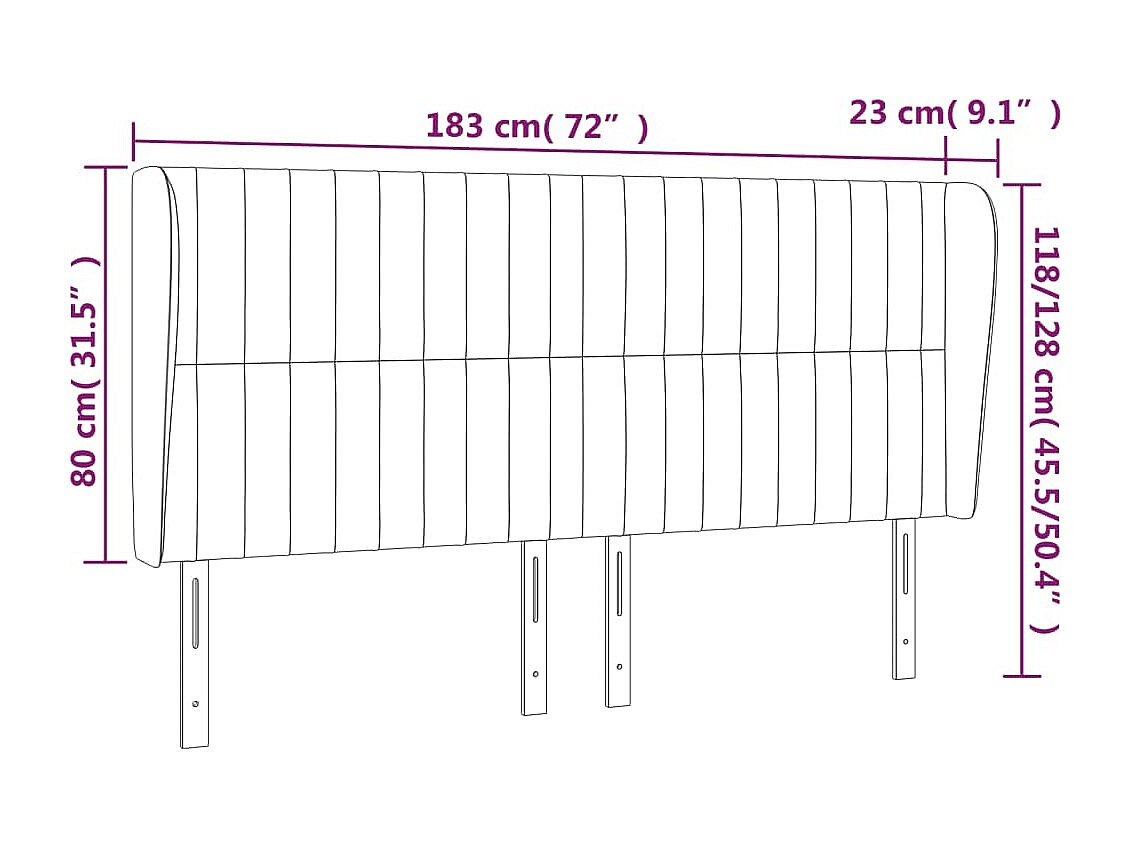 Hoofdbord met randen 183x23x118/128 cm fluweel zwart