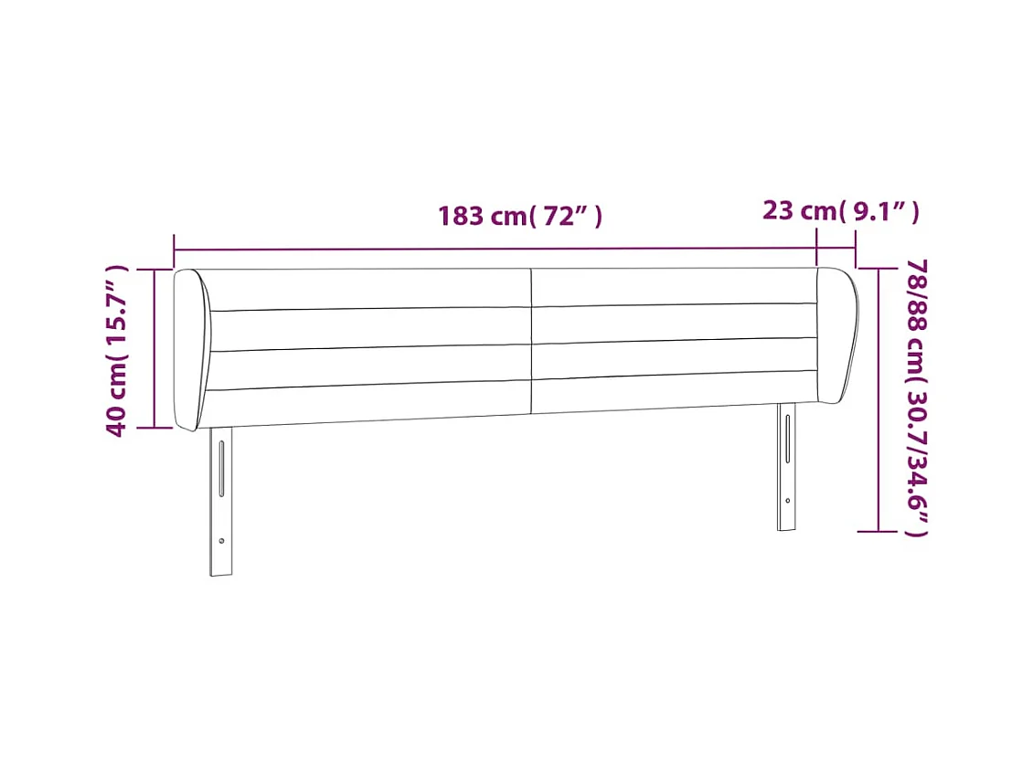 Hoofdbord met randen 183x23x78/88 cm stof donkergrijs