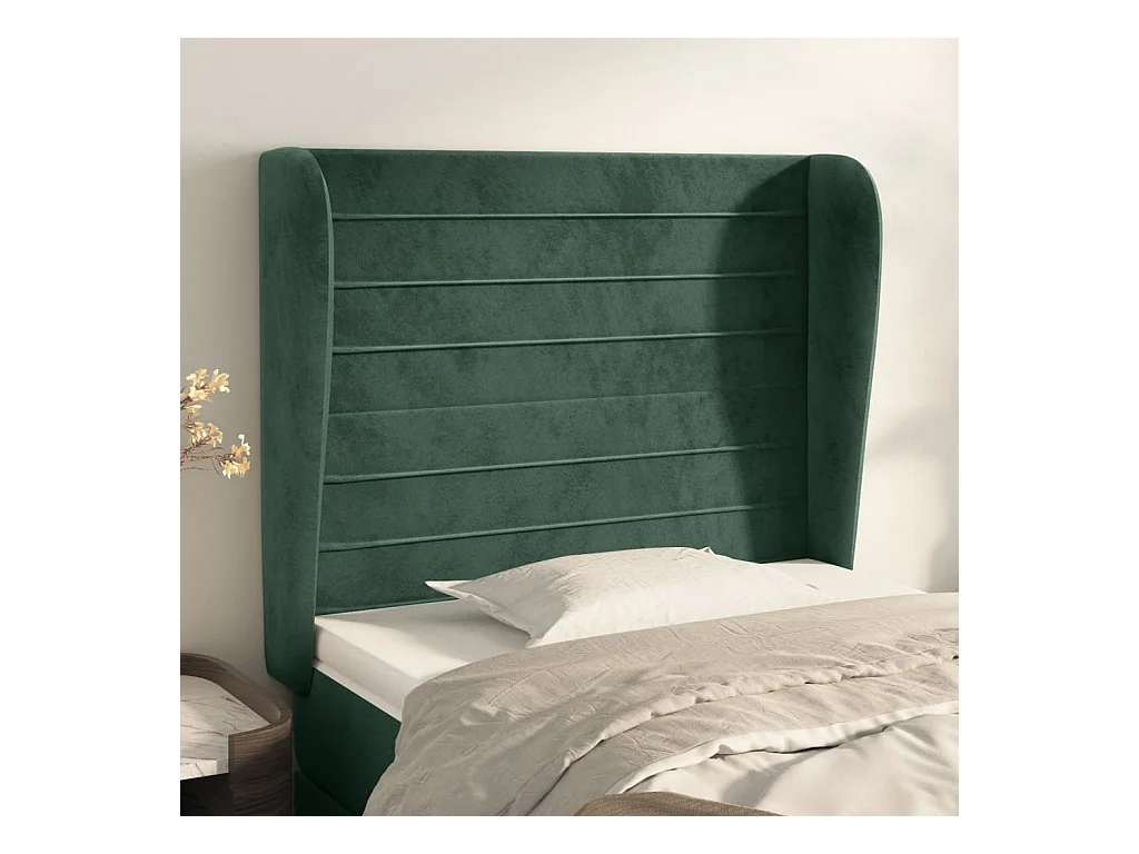Hoofdbord met randen 93x23x118/128 cm fluweel donkergroen