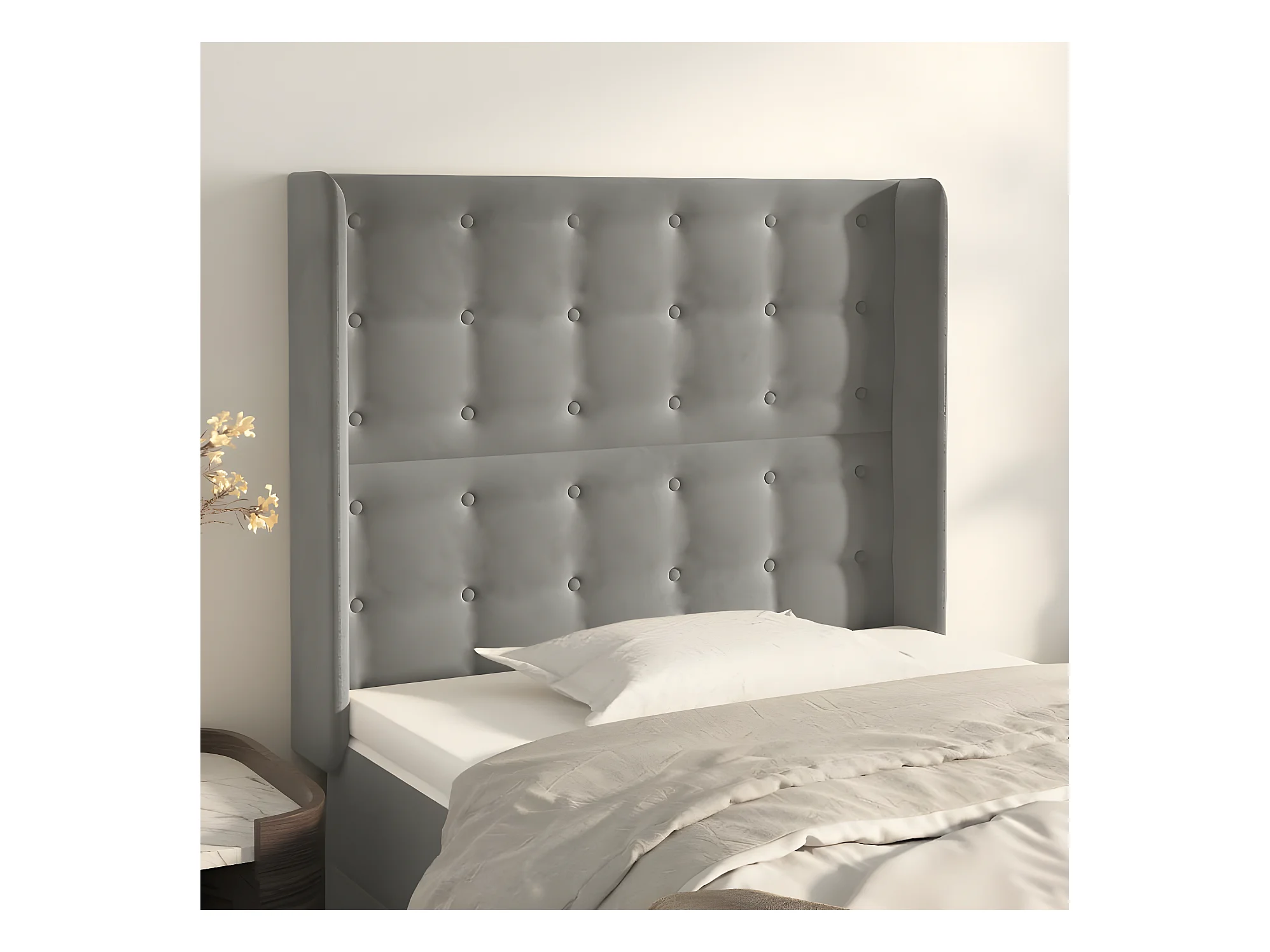 Hoofdbord stof fluweel grijs