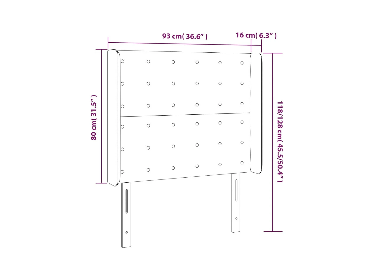 Hoofdbord met randen 93x16x118/128 cm fluweel donkergrijs