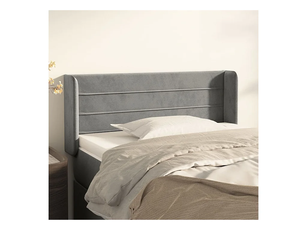 Hoofdbord met randen 93x16x118/128 cm fluweel lichtgrijs