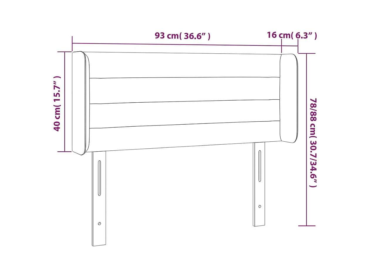 Hoofdbord met randen 93x23x78/88 cm fluweel donkergrijs