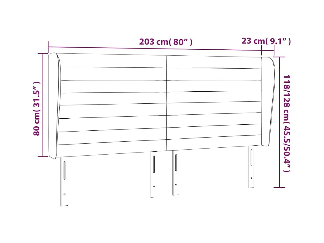 Hoofdbord met vleugels Donkergrijs 203x23x118/128 cm Fluweel