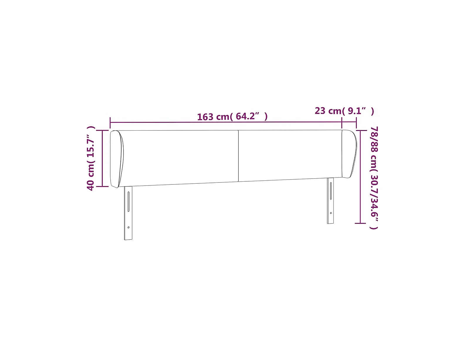 Hoofdbord met vleugels Grijs 163x23x78/88 cm Kunstleer
