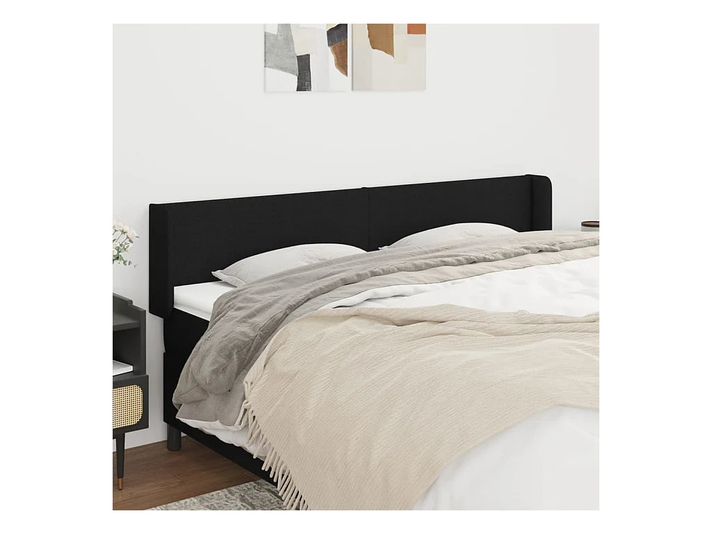 Hoofdbord met vleugels Zwart 203x16x78/88 cm Stof