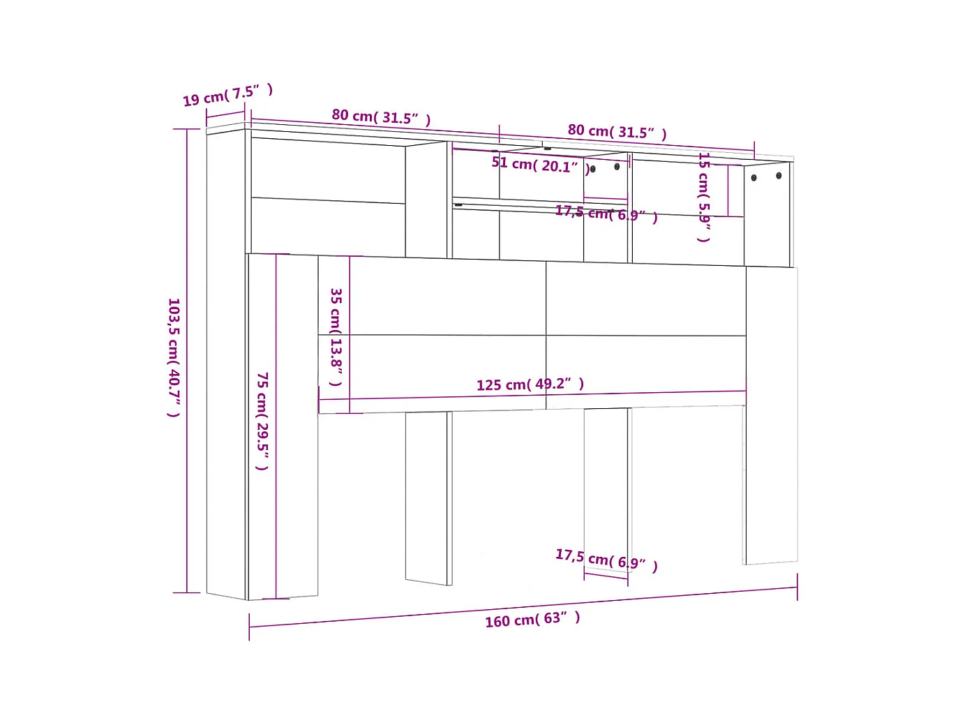 Hoofdbordkast 160x19x103,5 cm grijs sonoma eikenkleurig