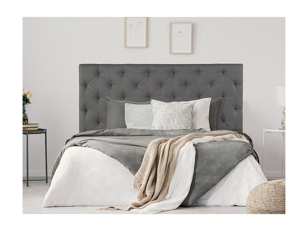 Hoofdeinde bed NADRA - Gewatteerd - 140 cm - Stof - Grijs