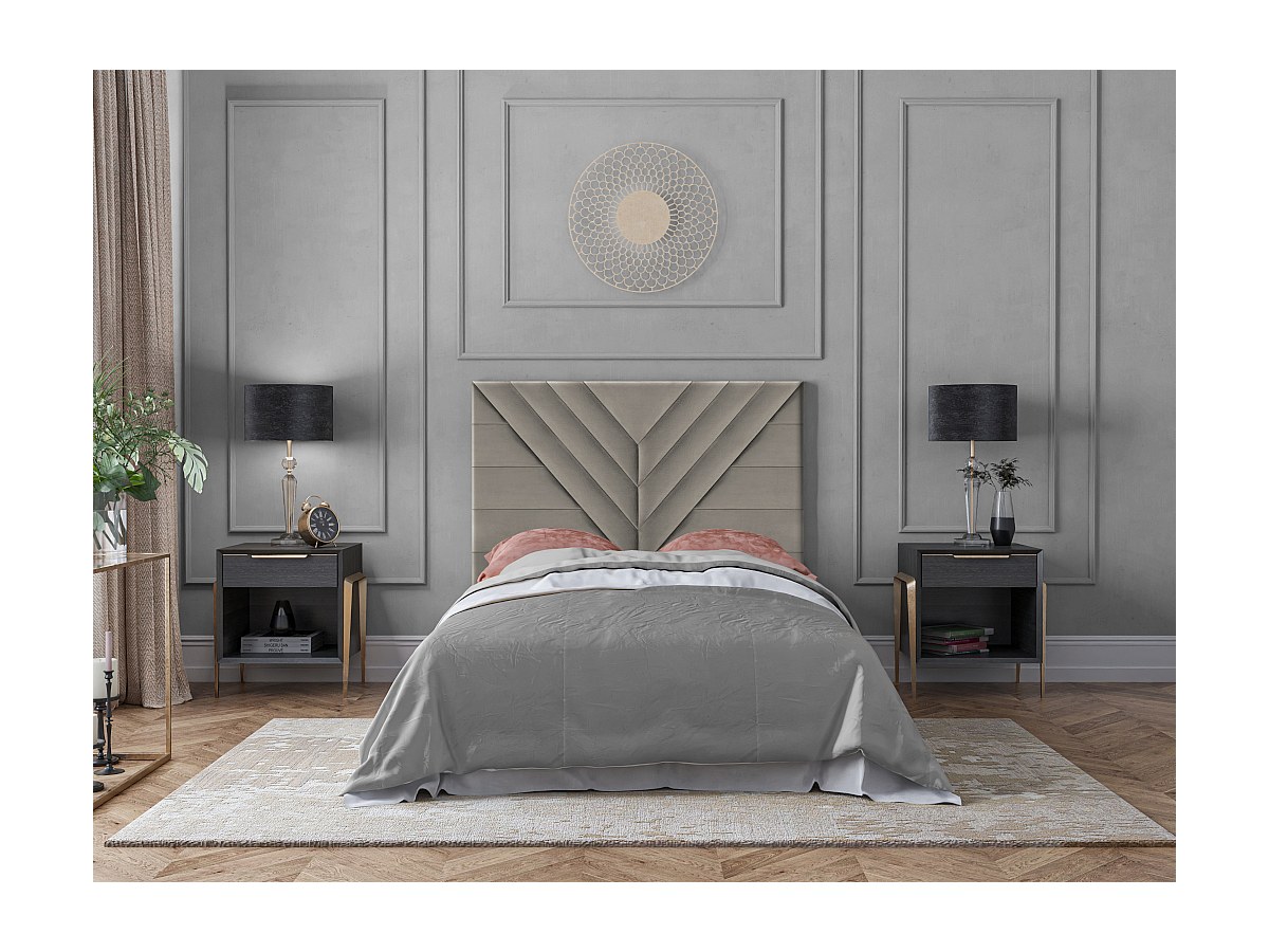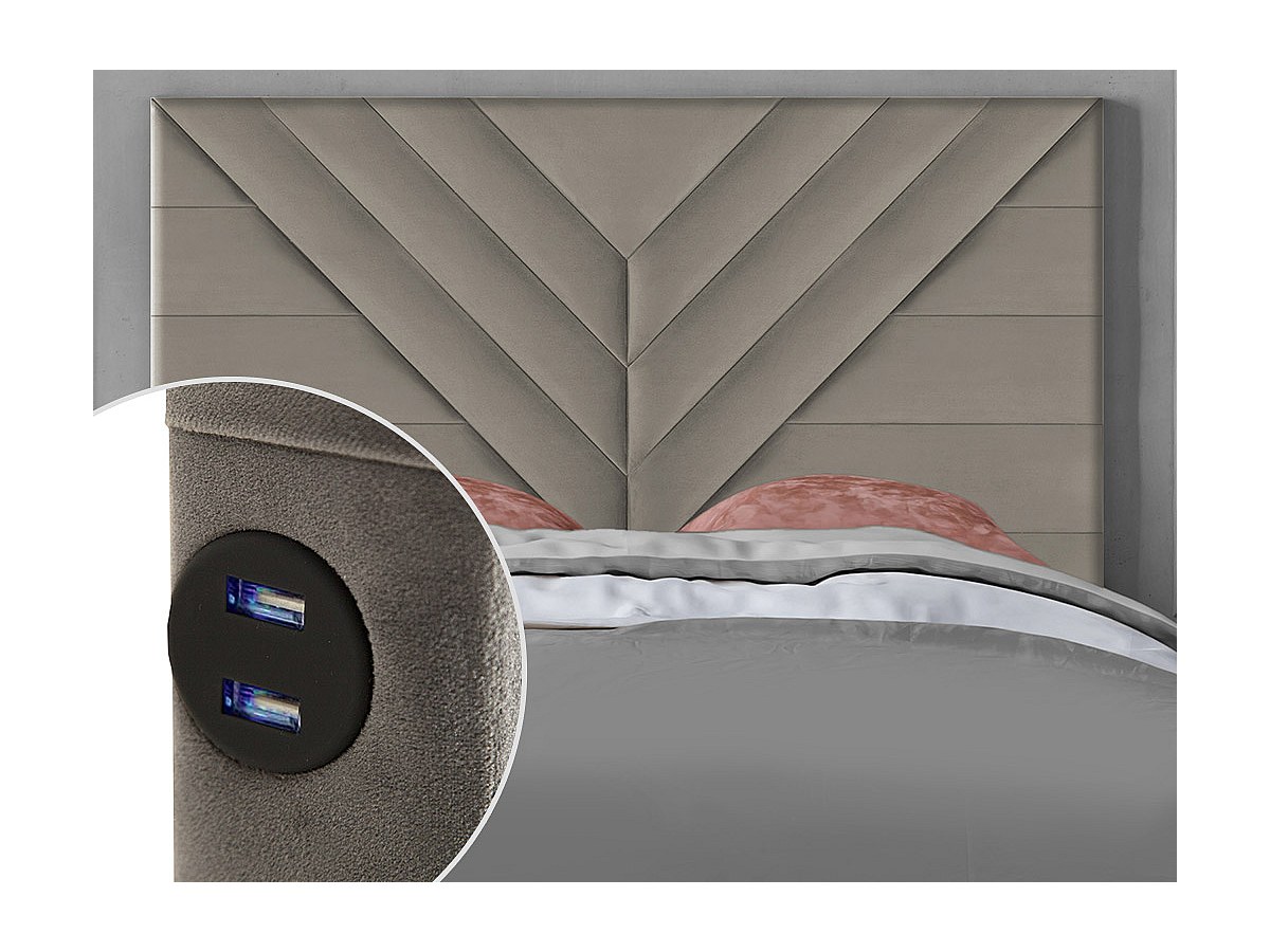 Hoofdeinde HOLDA - 160 cm - met USB-ingang - Fluweel - Beige