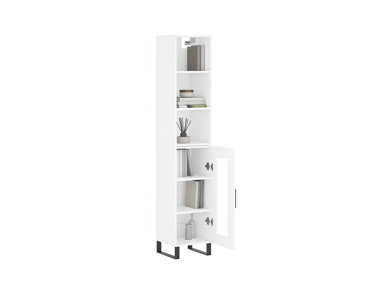 Hoog dressoir Glanzend wit 34,5x34x180 cm Bewerkt hout
