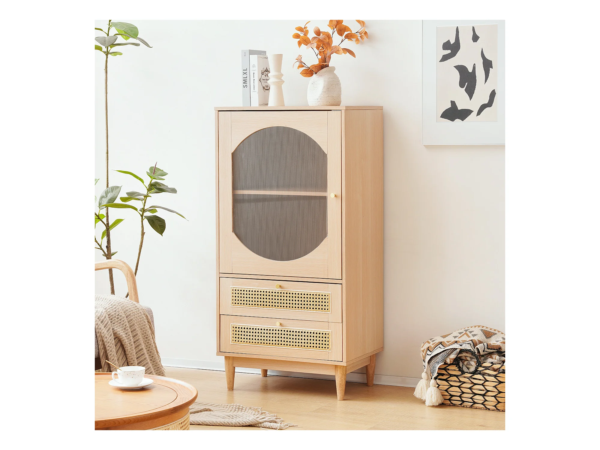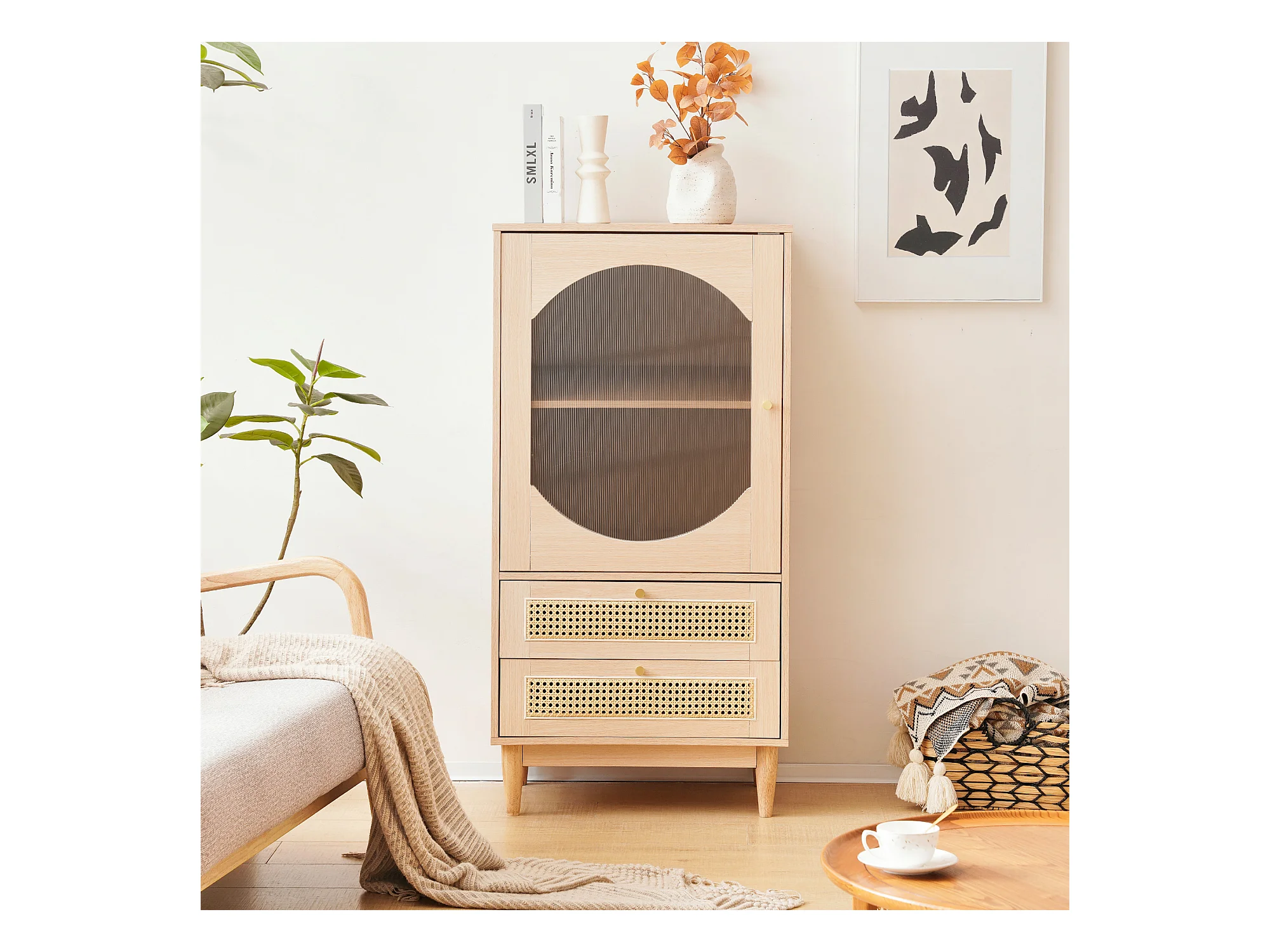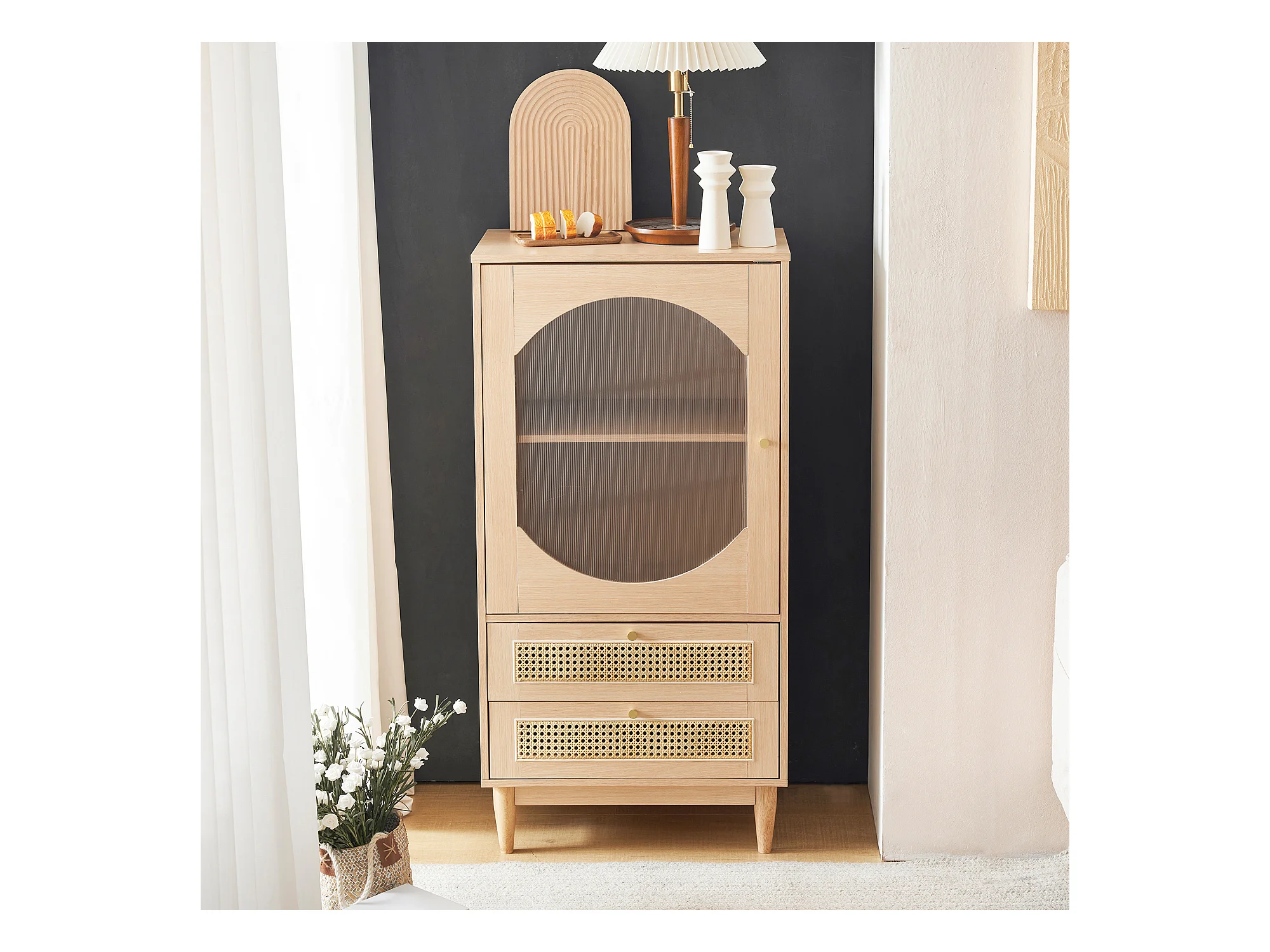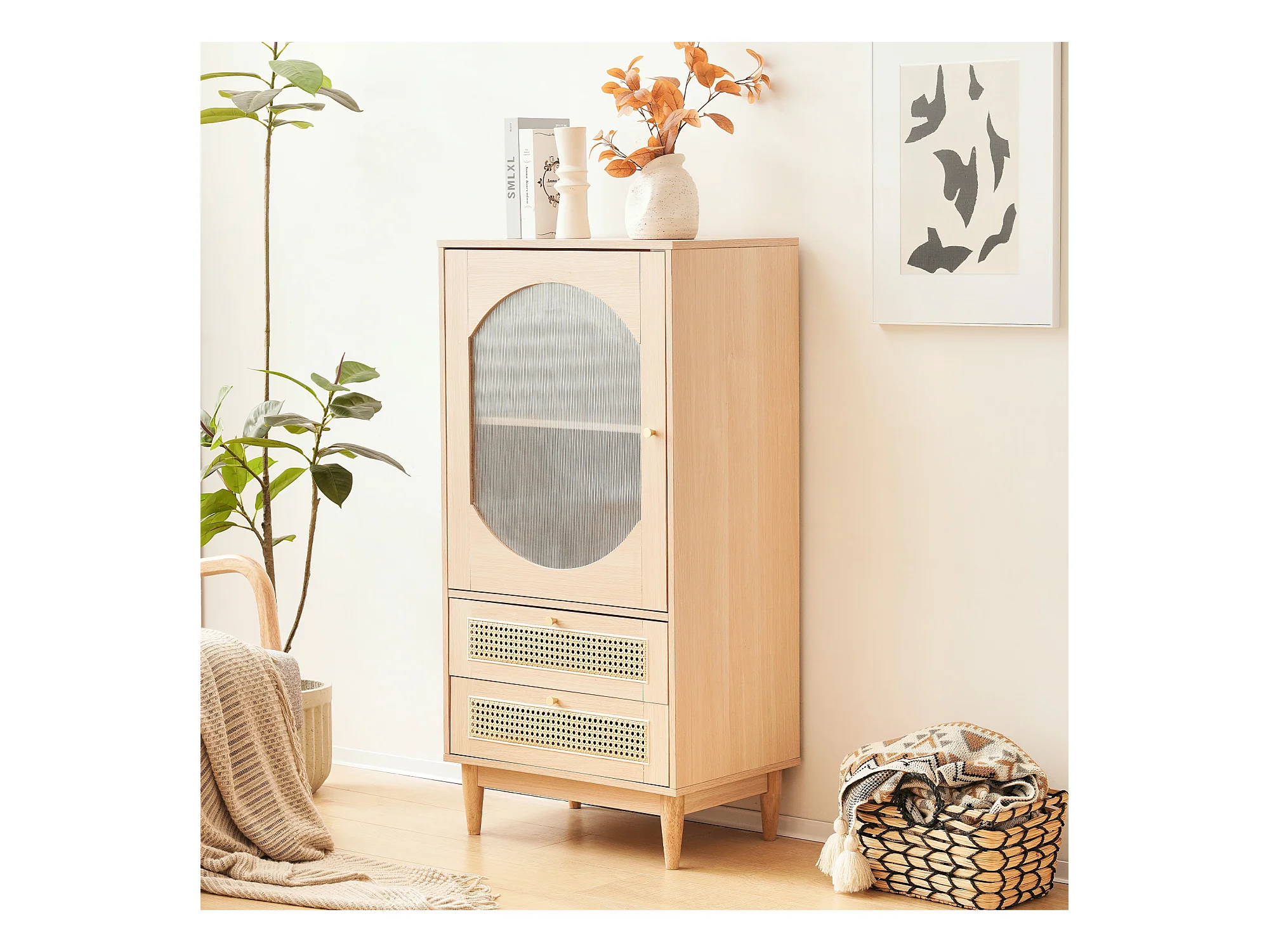 Hoog dressoir met 2 laden en 1 glazen deur, spaanplaathout, eikenkleur, 60 x 40 x 120 cm