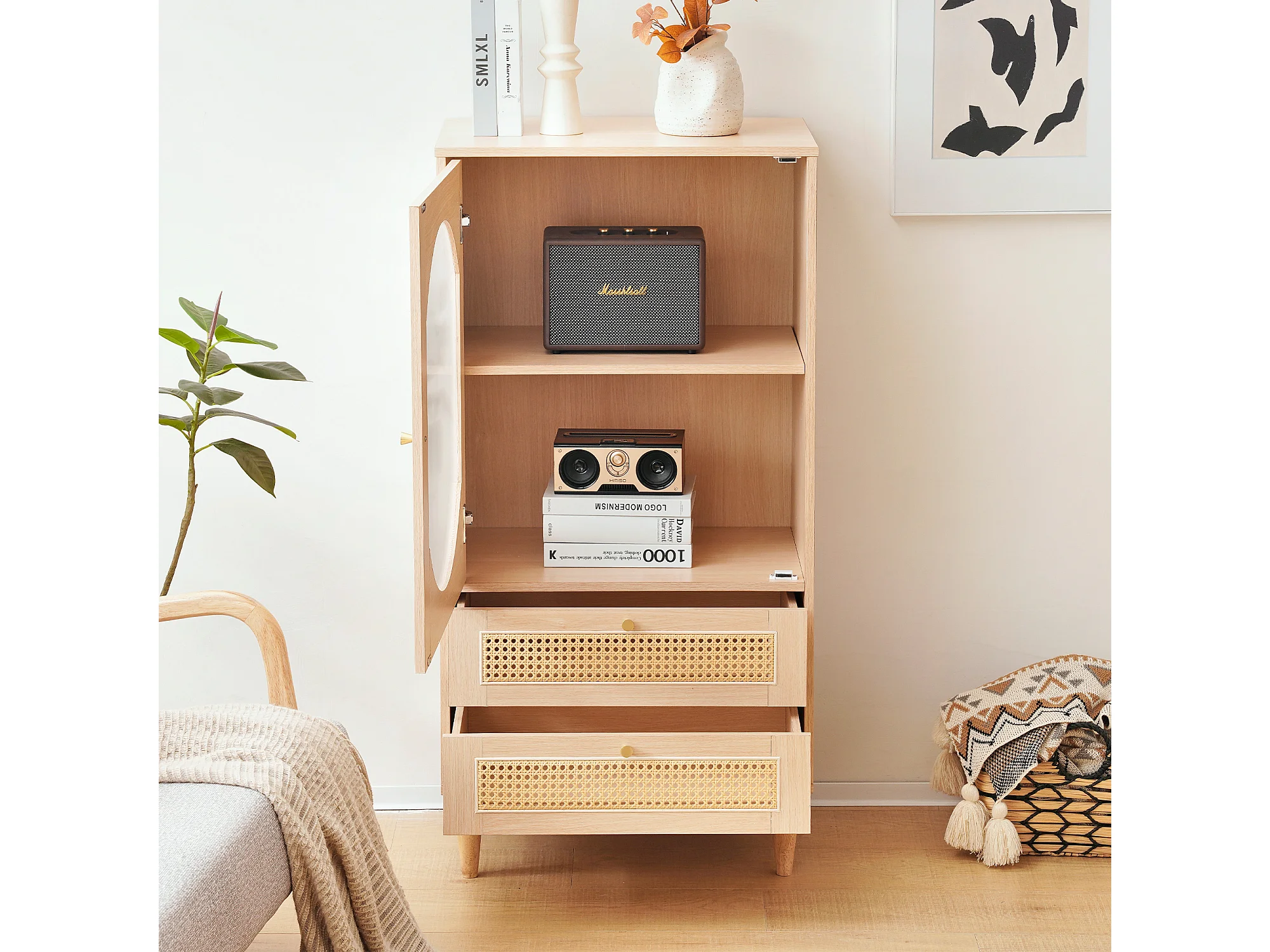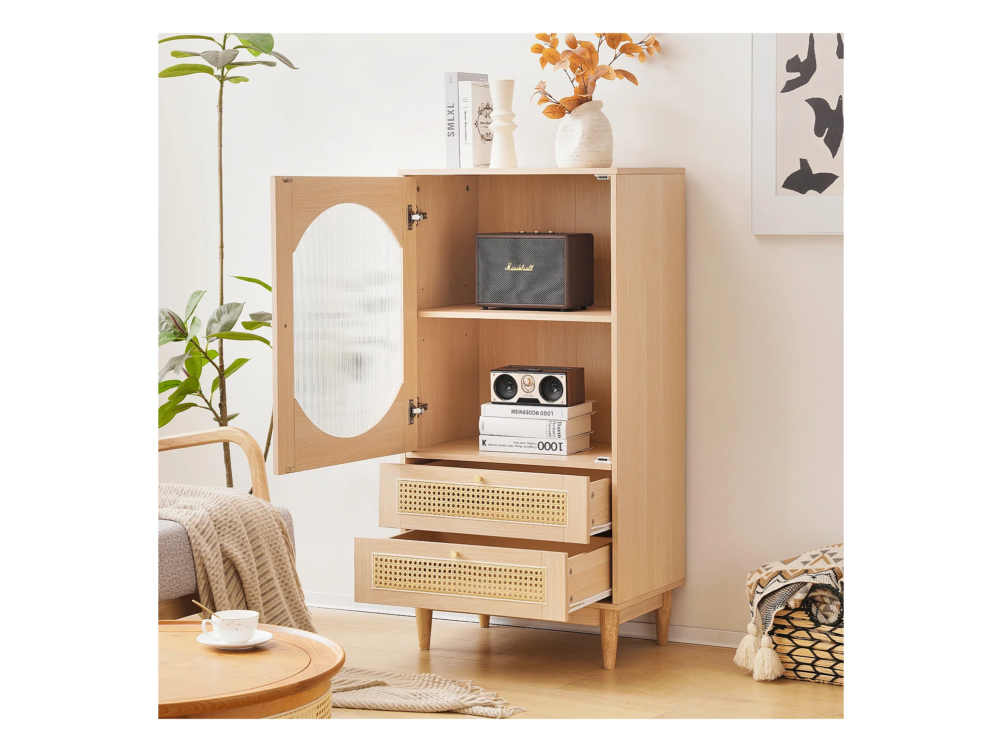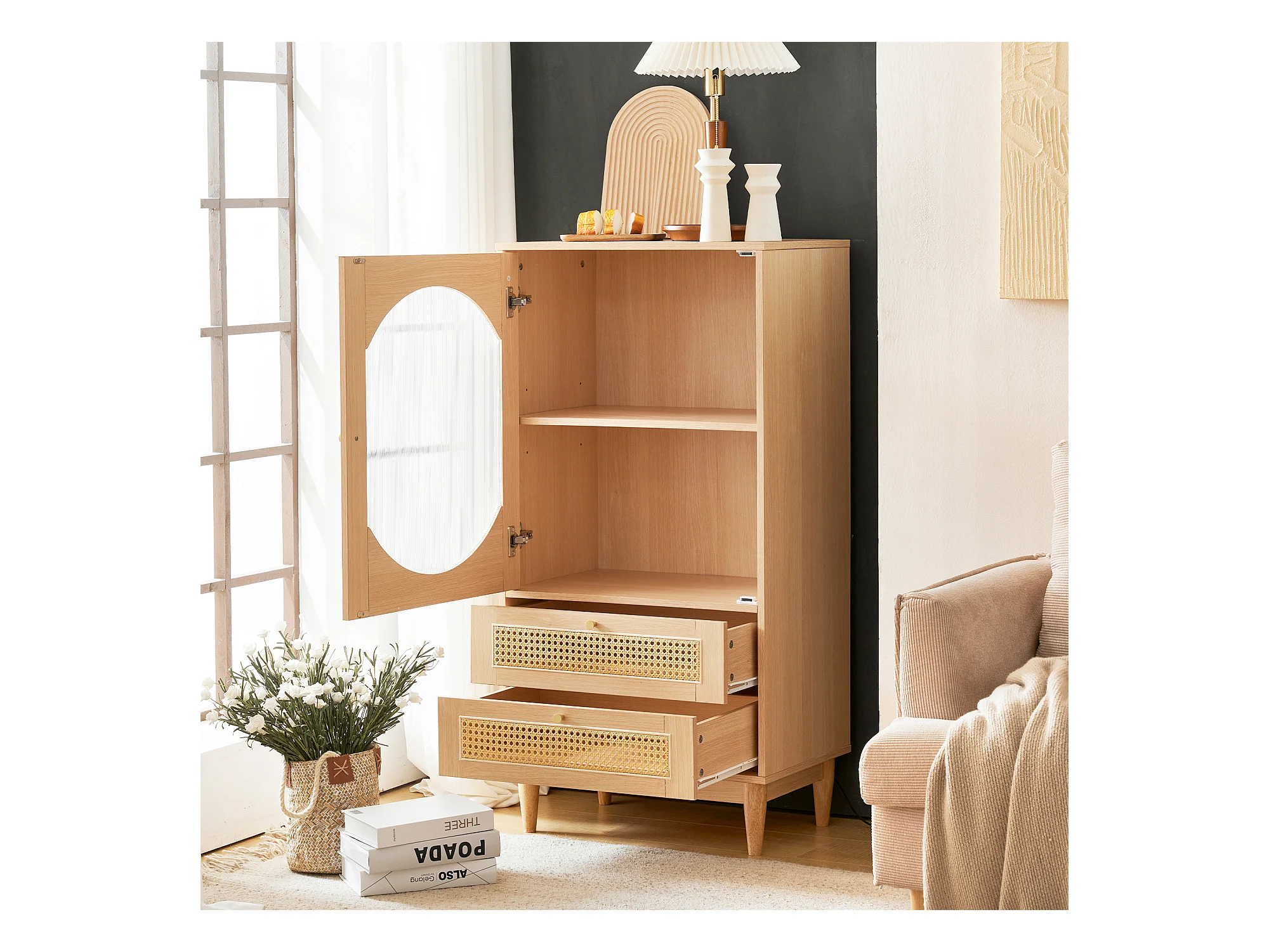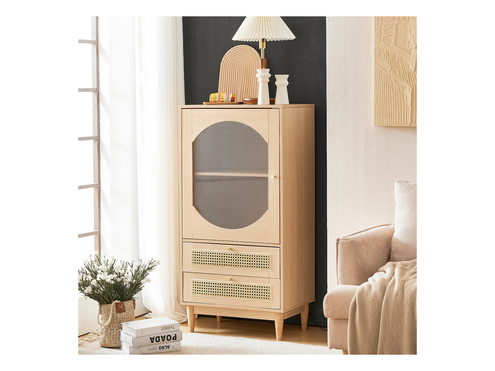 Hoog dressoir met 2 laden en 1 glazen deur, spaanplaathout, eikenkleur, 60 x 40 x 120 cm