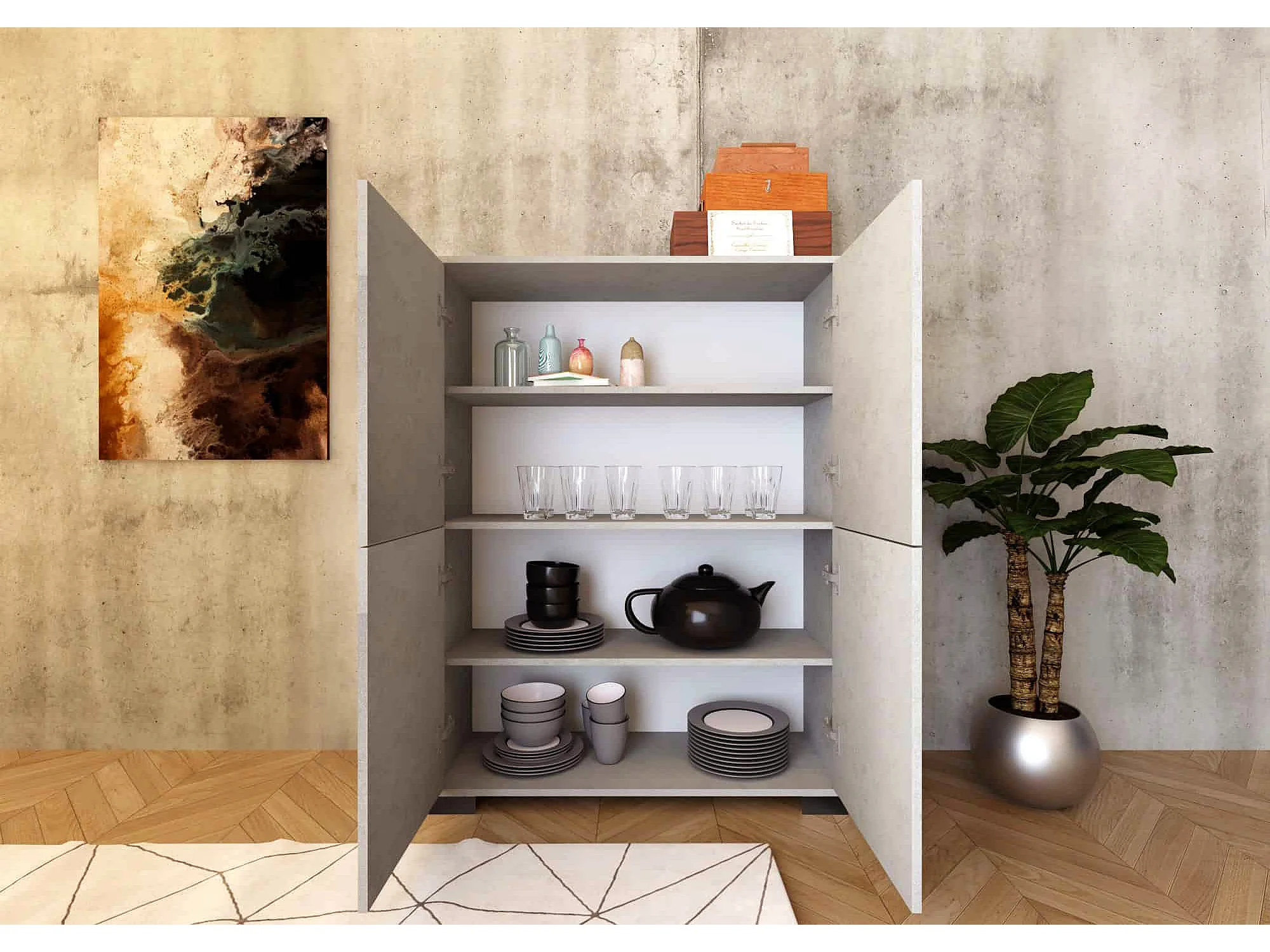 Hoog dressoir met 4 deuren 90x35x120 cm kasjmier Lumina