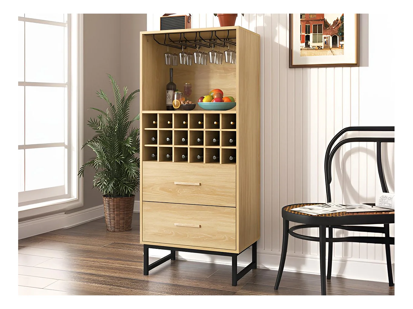 Hoog dressoir、Wijnkelder - 2 laden en 18 vakken - Naturel