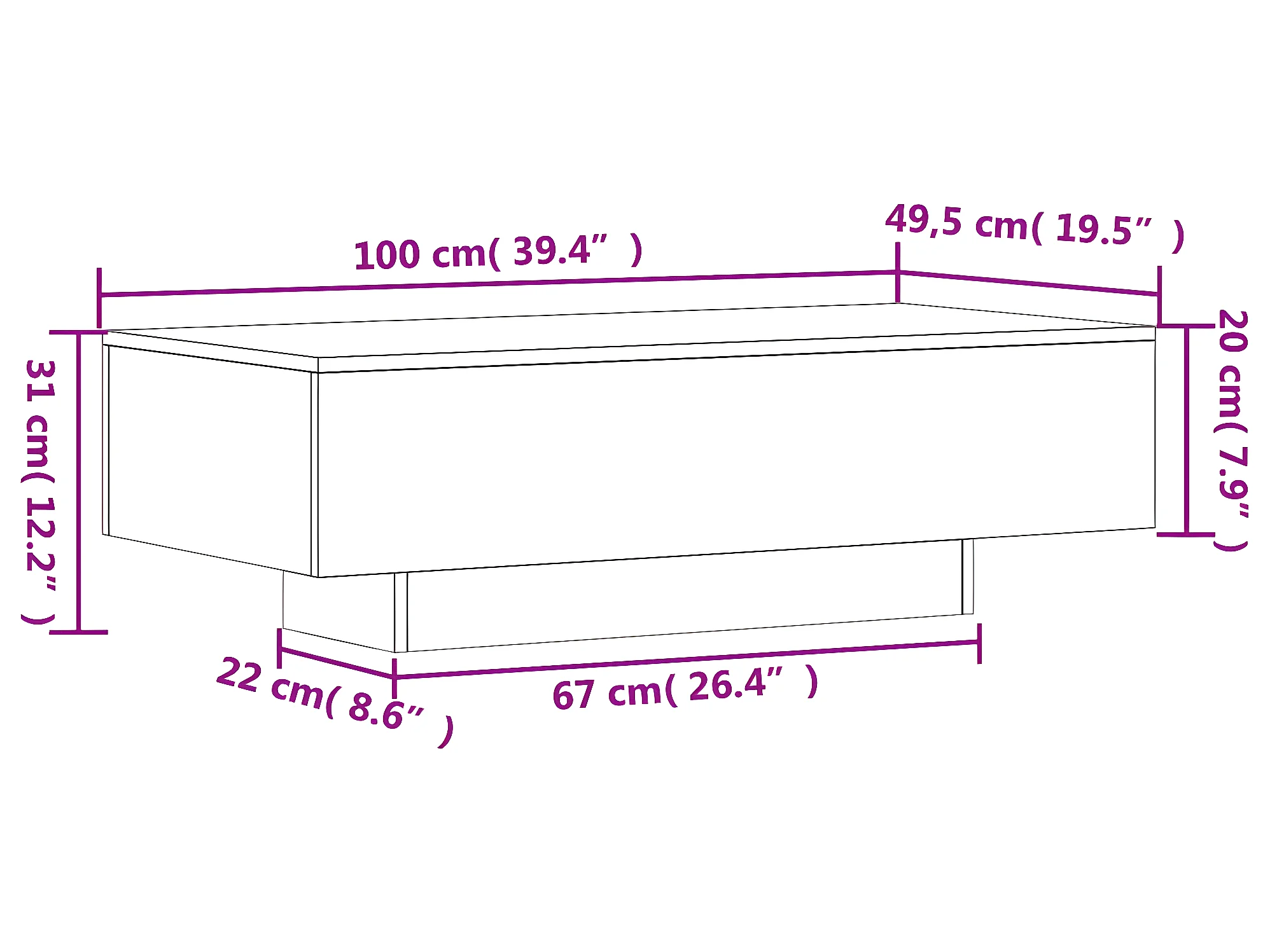 Hoogglans salontafel 100x49,5x31 cm moderne engineering hout met groot oppervlak - Montage vereist