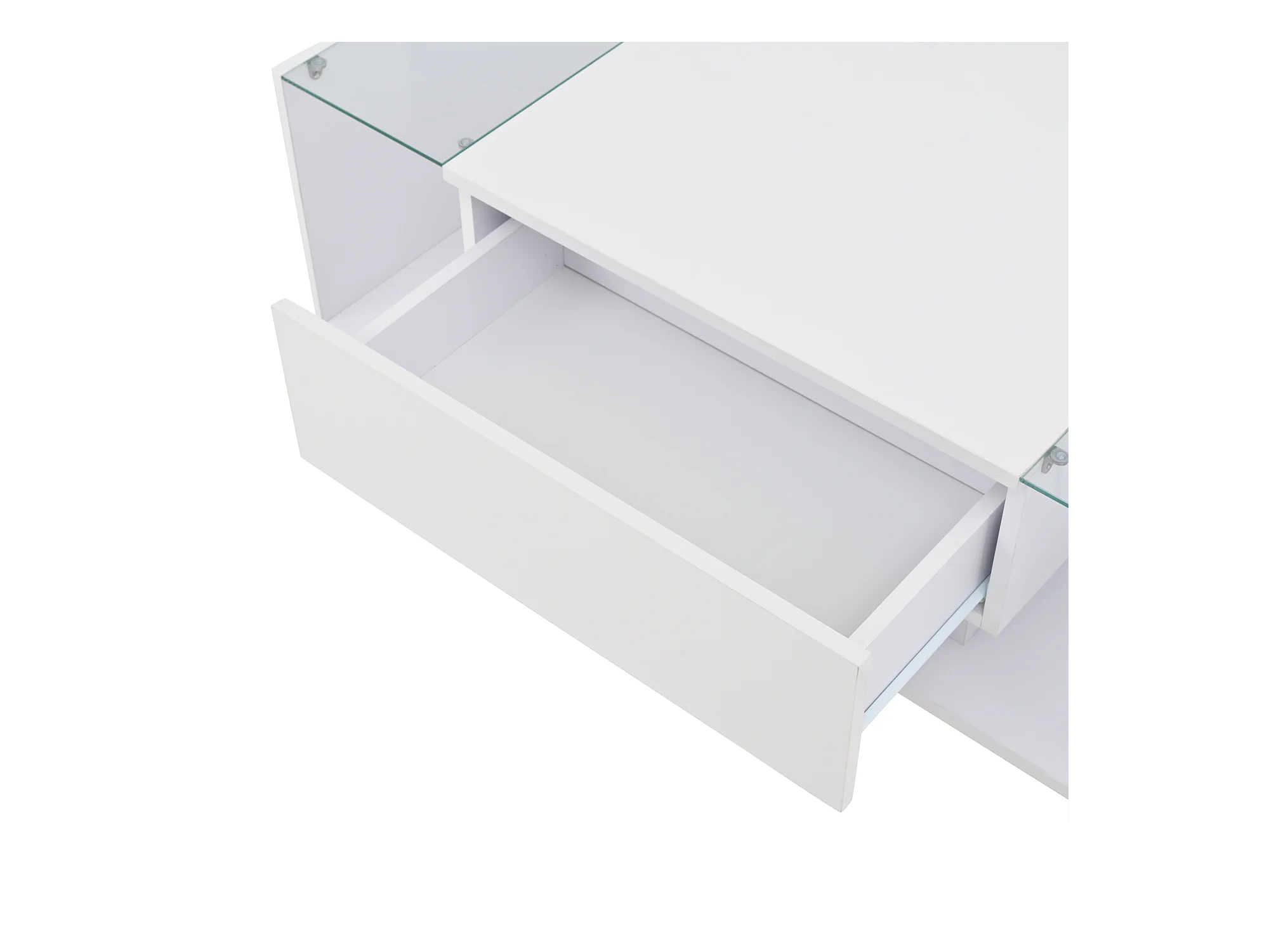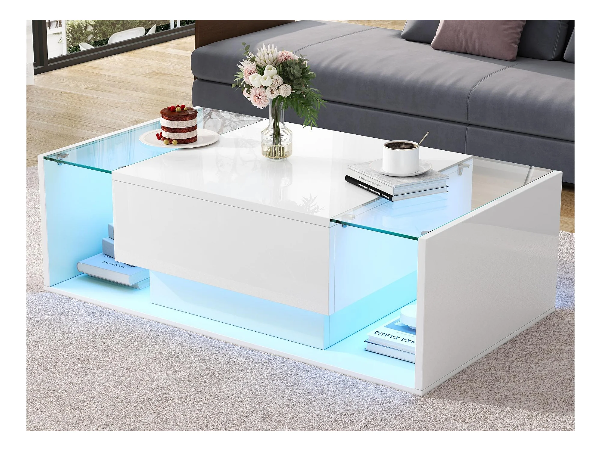 Hoogglans salontafel 100x50x31 cm - 1 lade - met LED-verlichting - Gehard glas - Wit