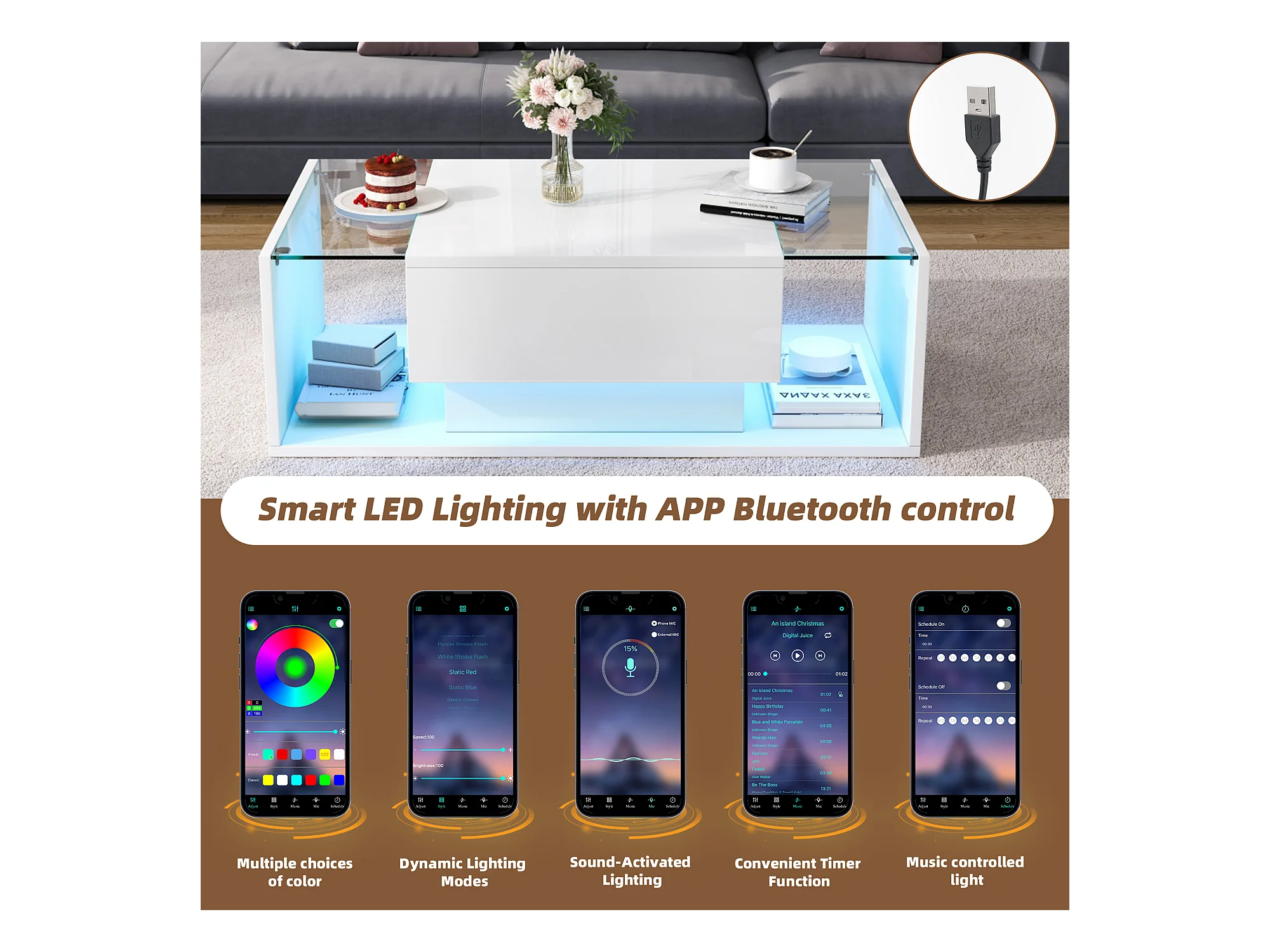 Salontafel - met app-gestuurd LED-verlichtingssysteem - Wit