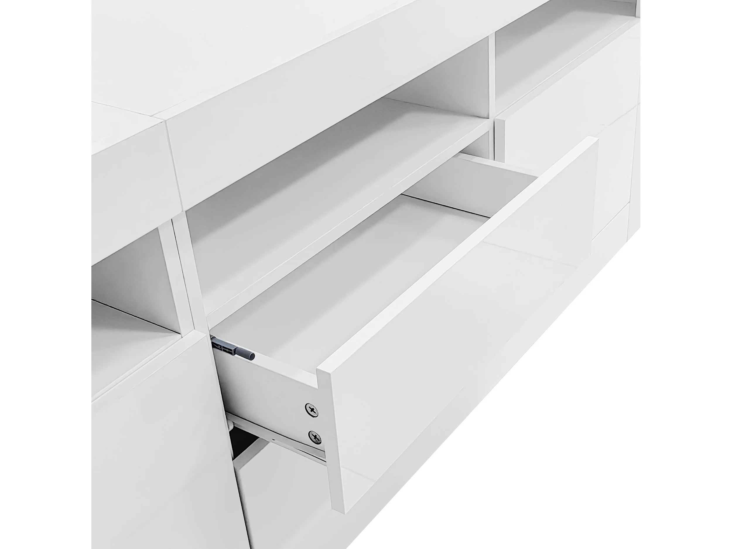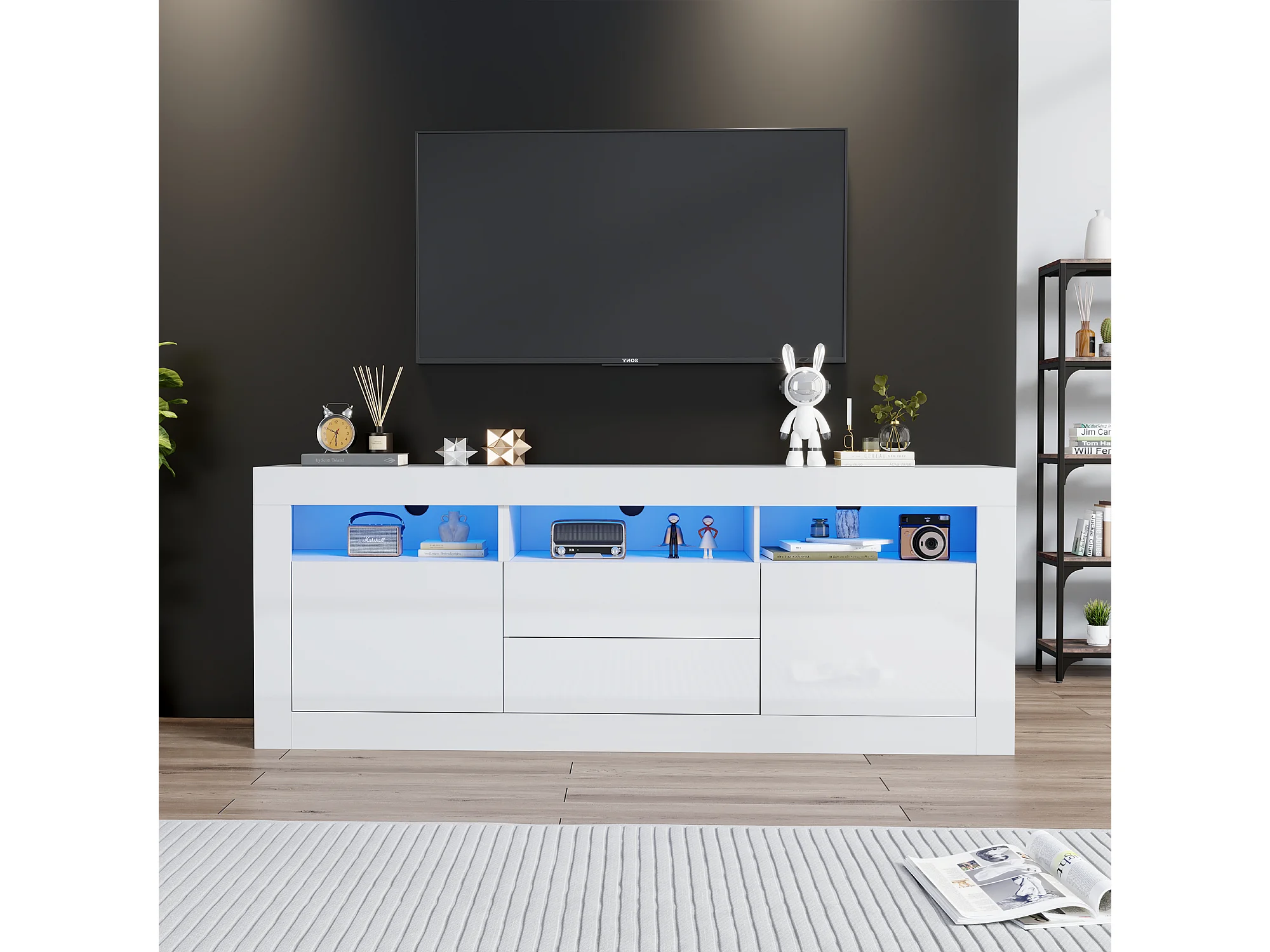 Hoogglans tv-meubel met ledverlichting, 2 deuren en 2 lades - Wit PB-hout