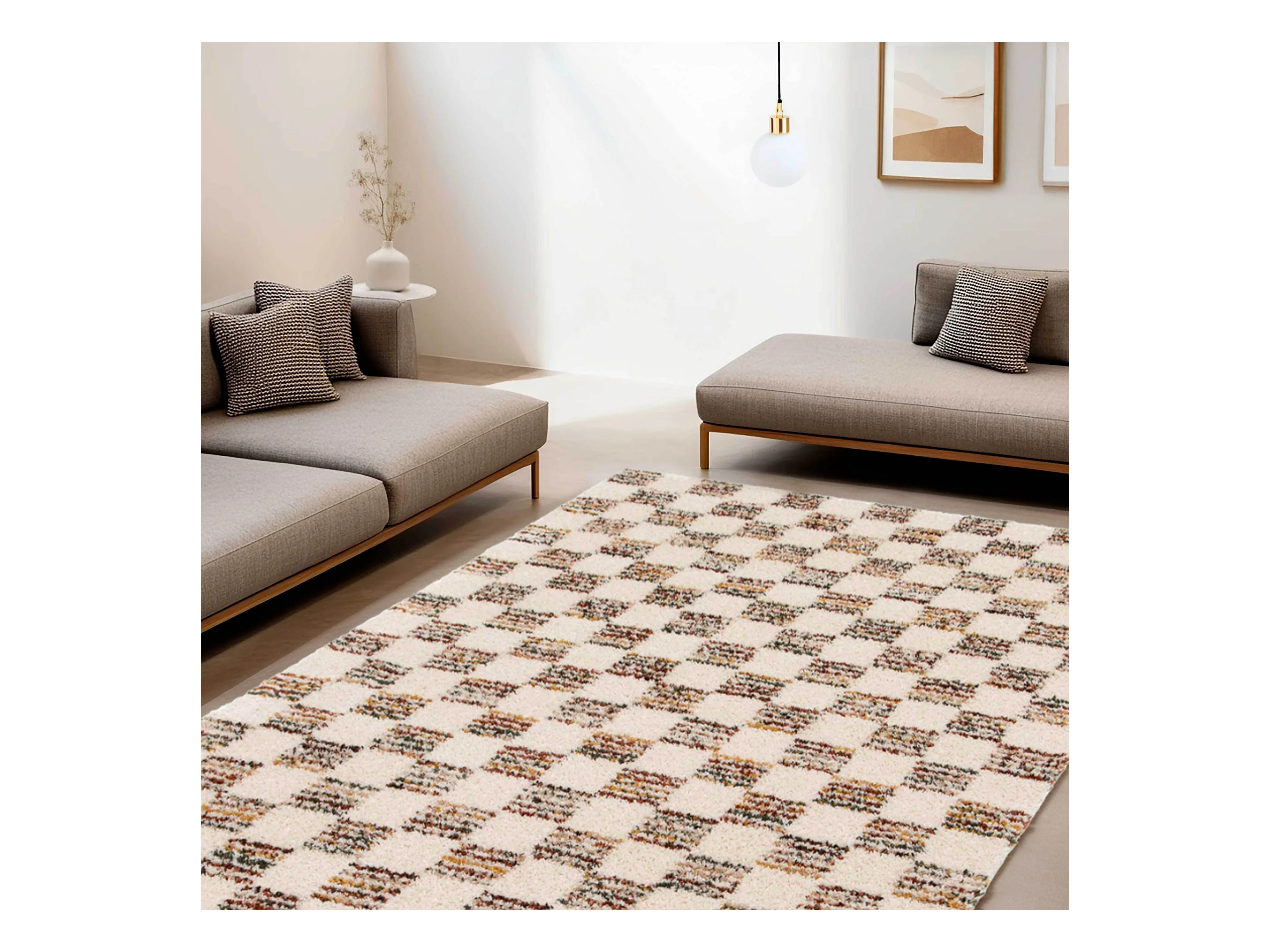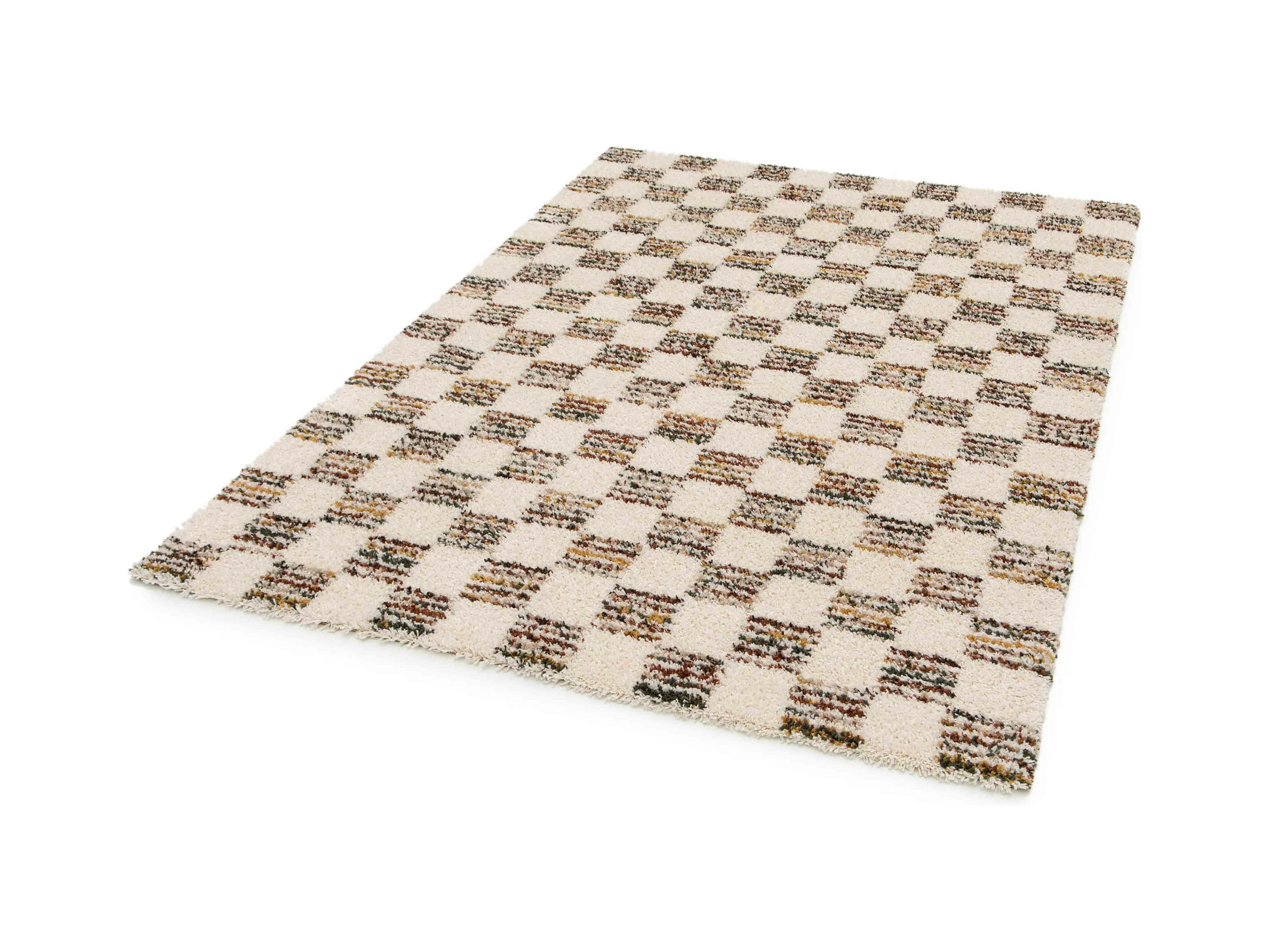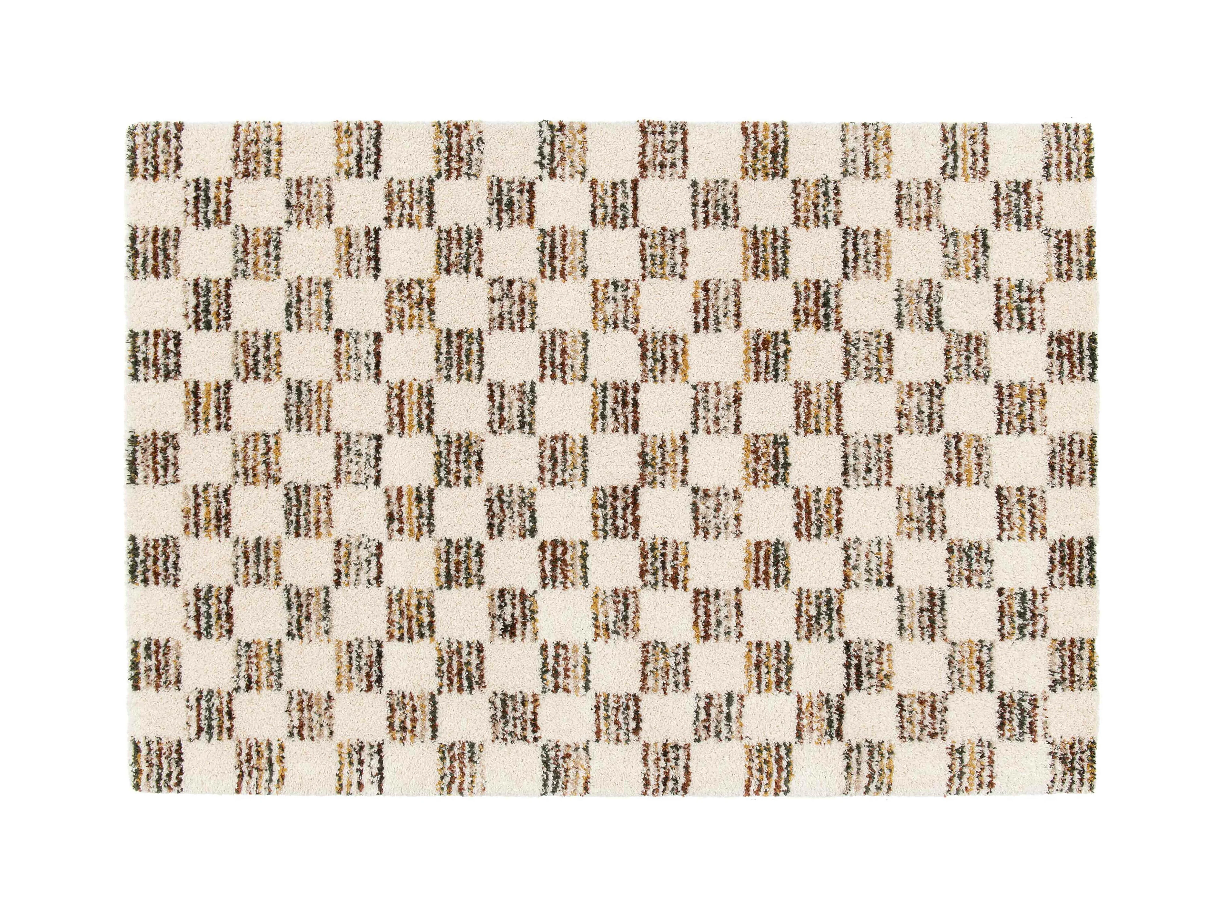 Hoogpolig vloerkleed met bruin vierkant patroon 160 x 230 cm