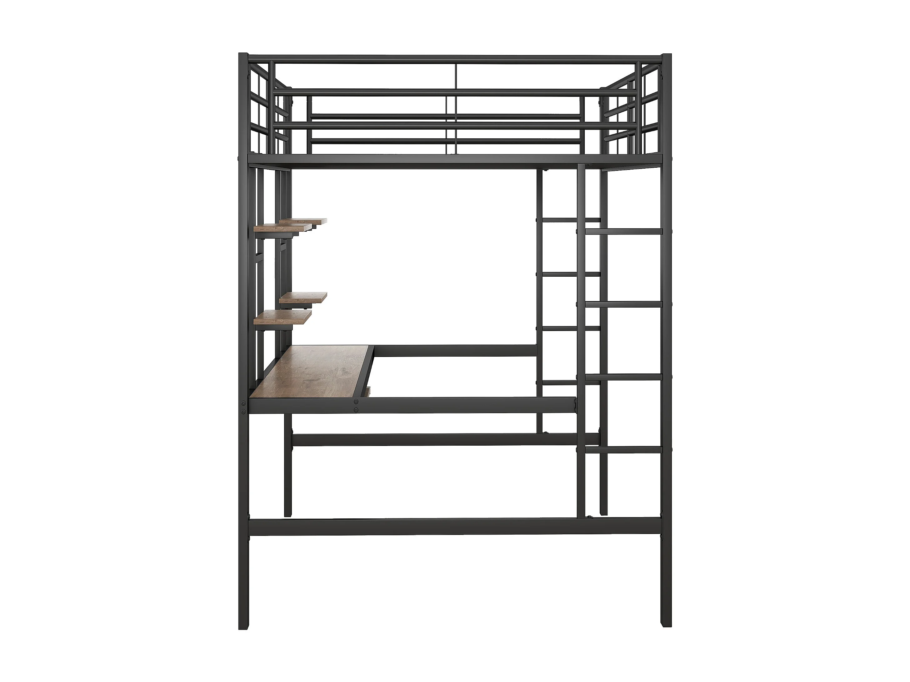 Hoogslaper 140x200 cm, met bureau en planken, metaal, zwart (204x145x180 cm)
