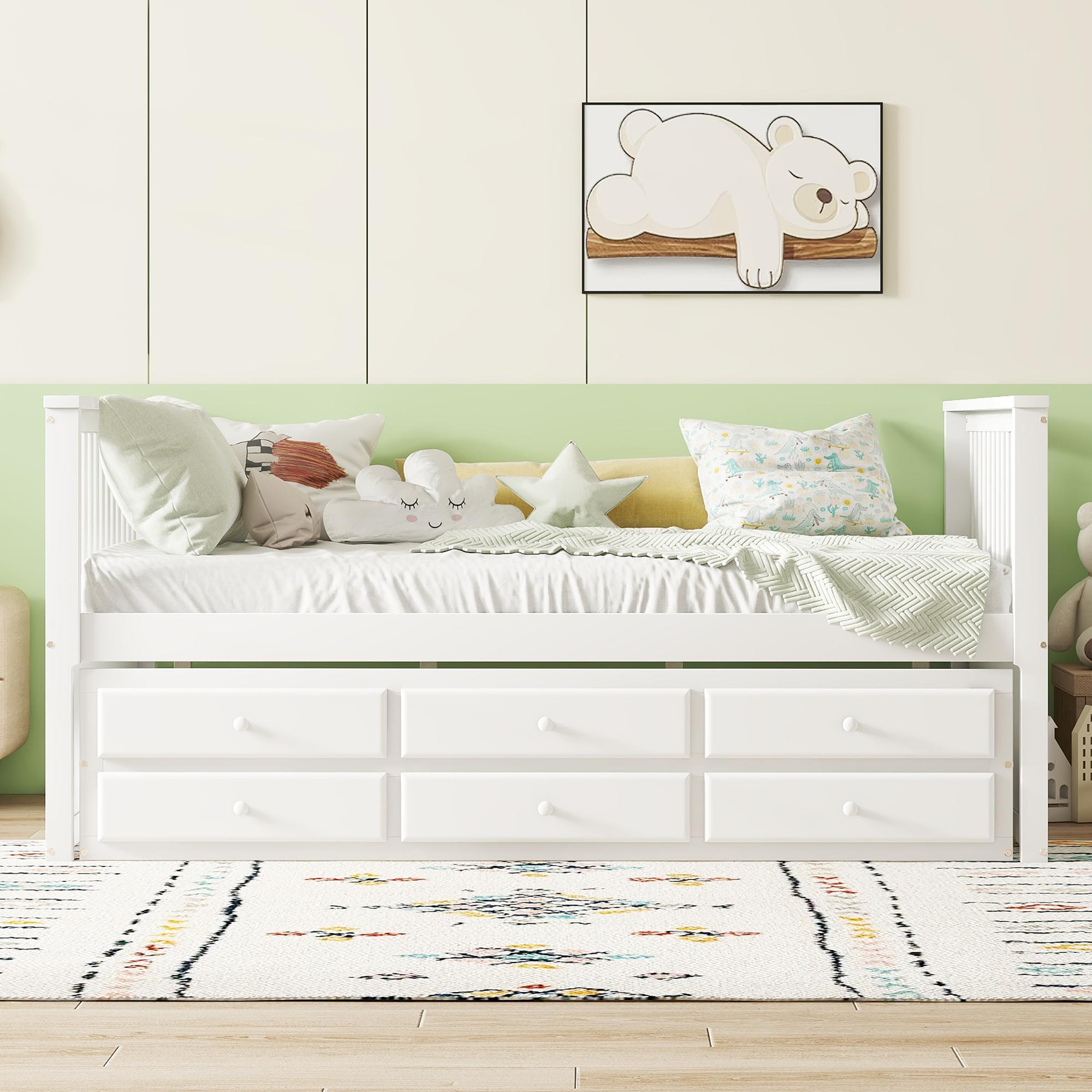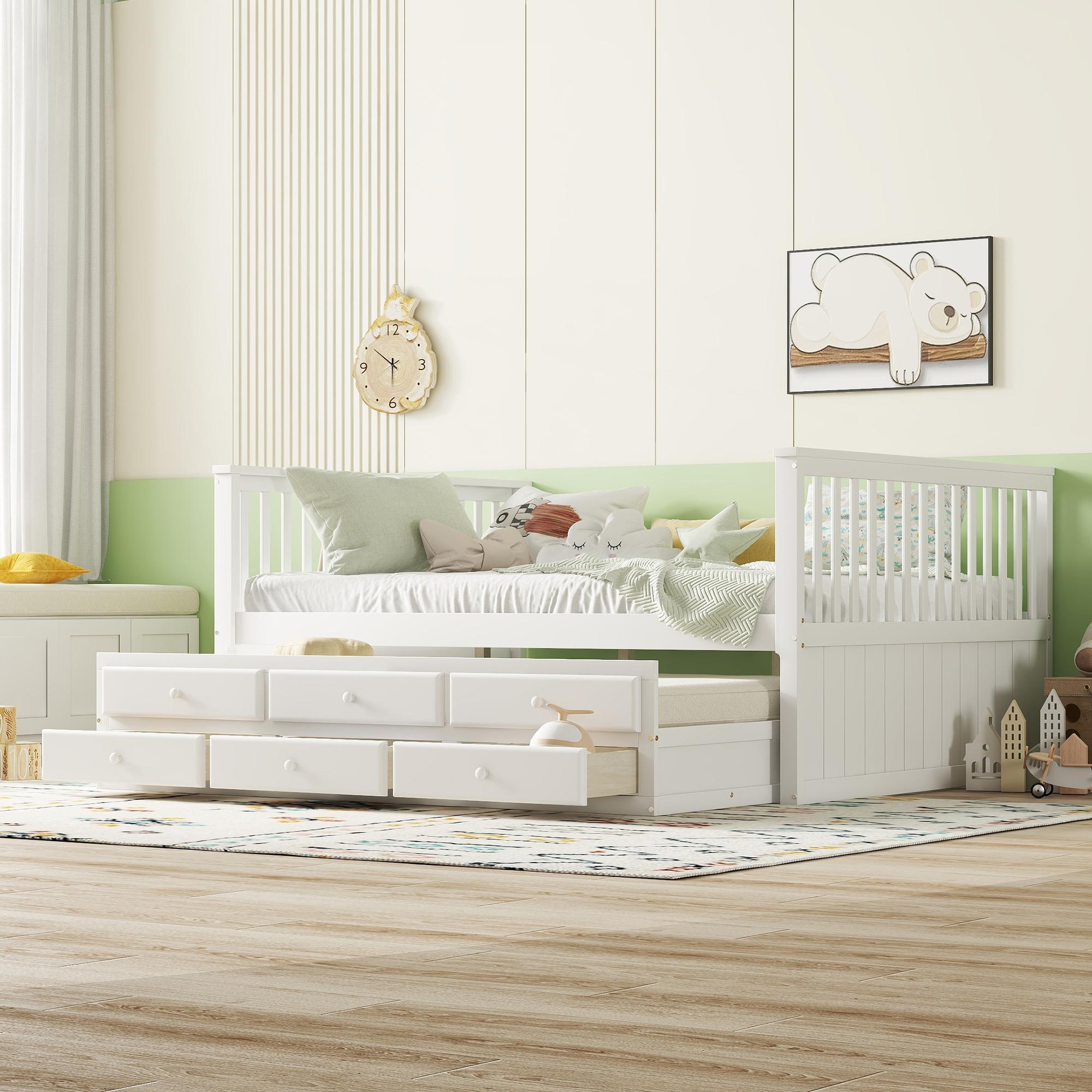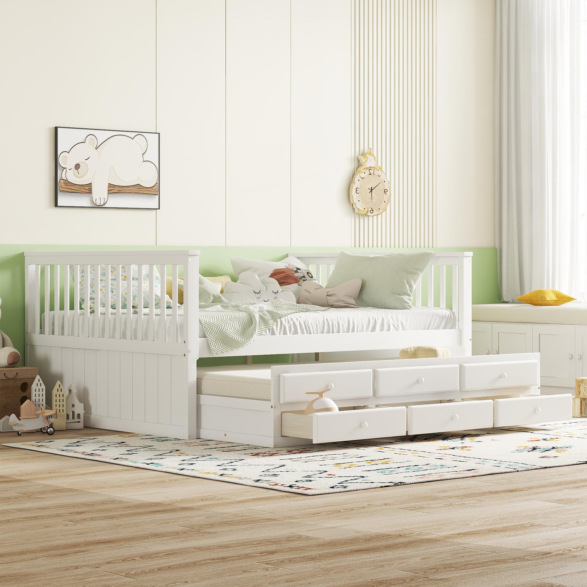 Hoogslaper 140x200 cm, met opberglades en opklapbed, massief hout, wit (205x149x90 cm)