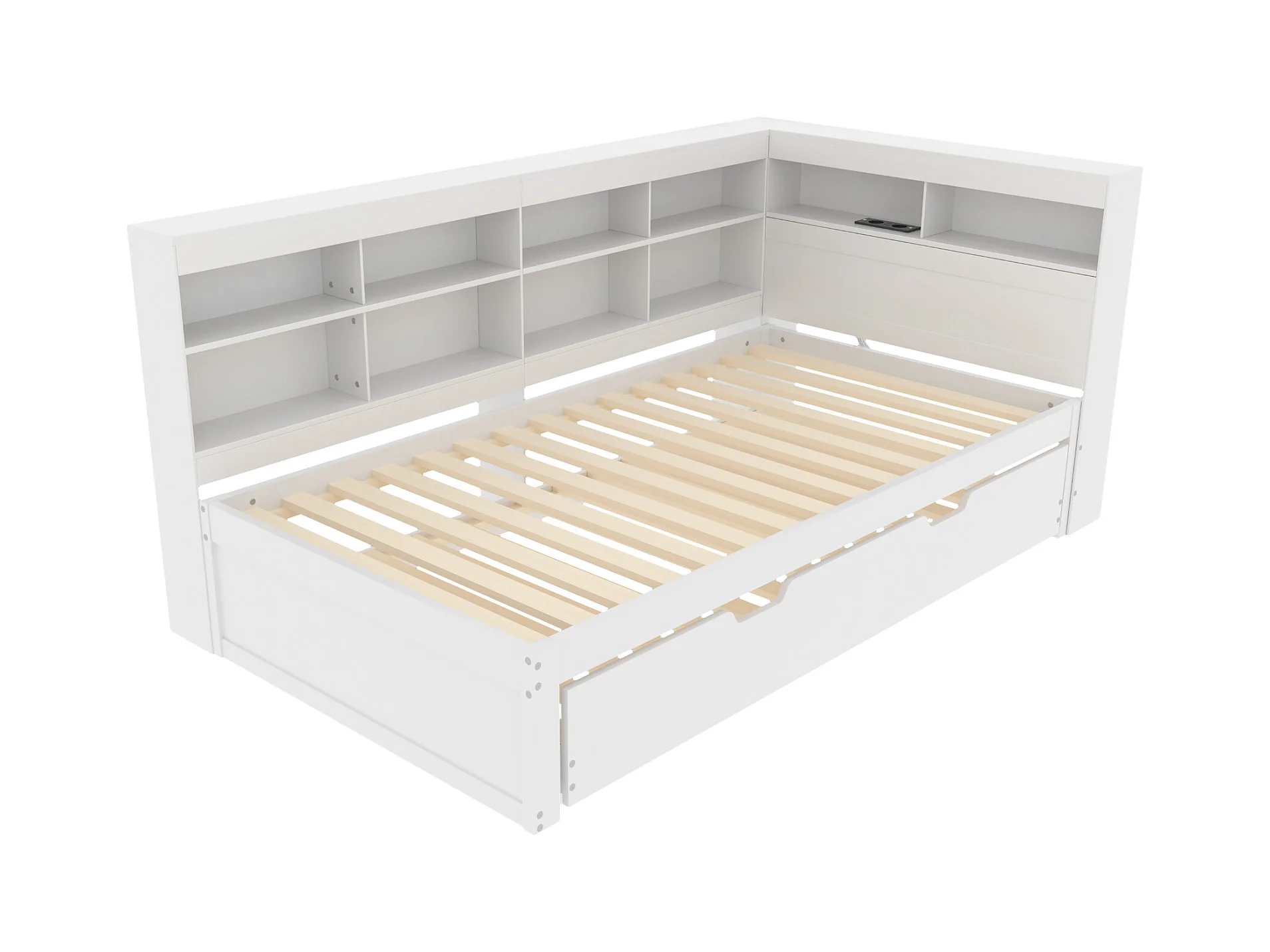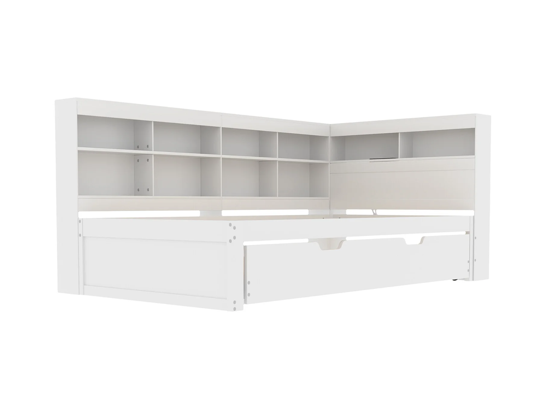 Multifunctioneel hoogslaper met uitschuifbaar bureau, plank, lade en opbergruimte, MDF, wit (90x200 cm)