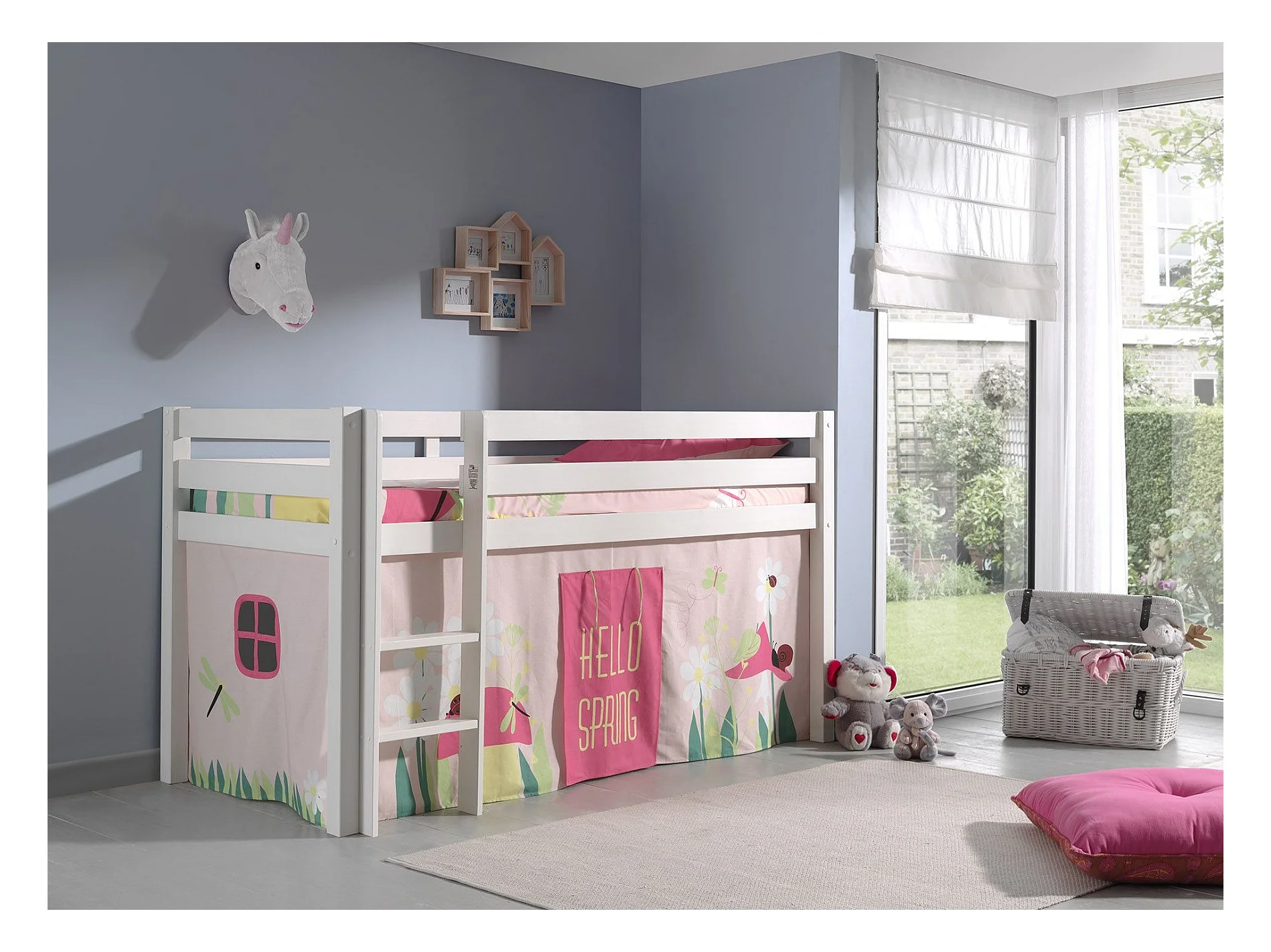 Mezzaninebed 90x200 cm met tent en 3 veerzakken massief wit grenen Pino