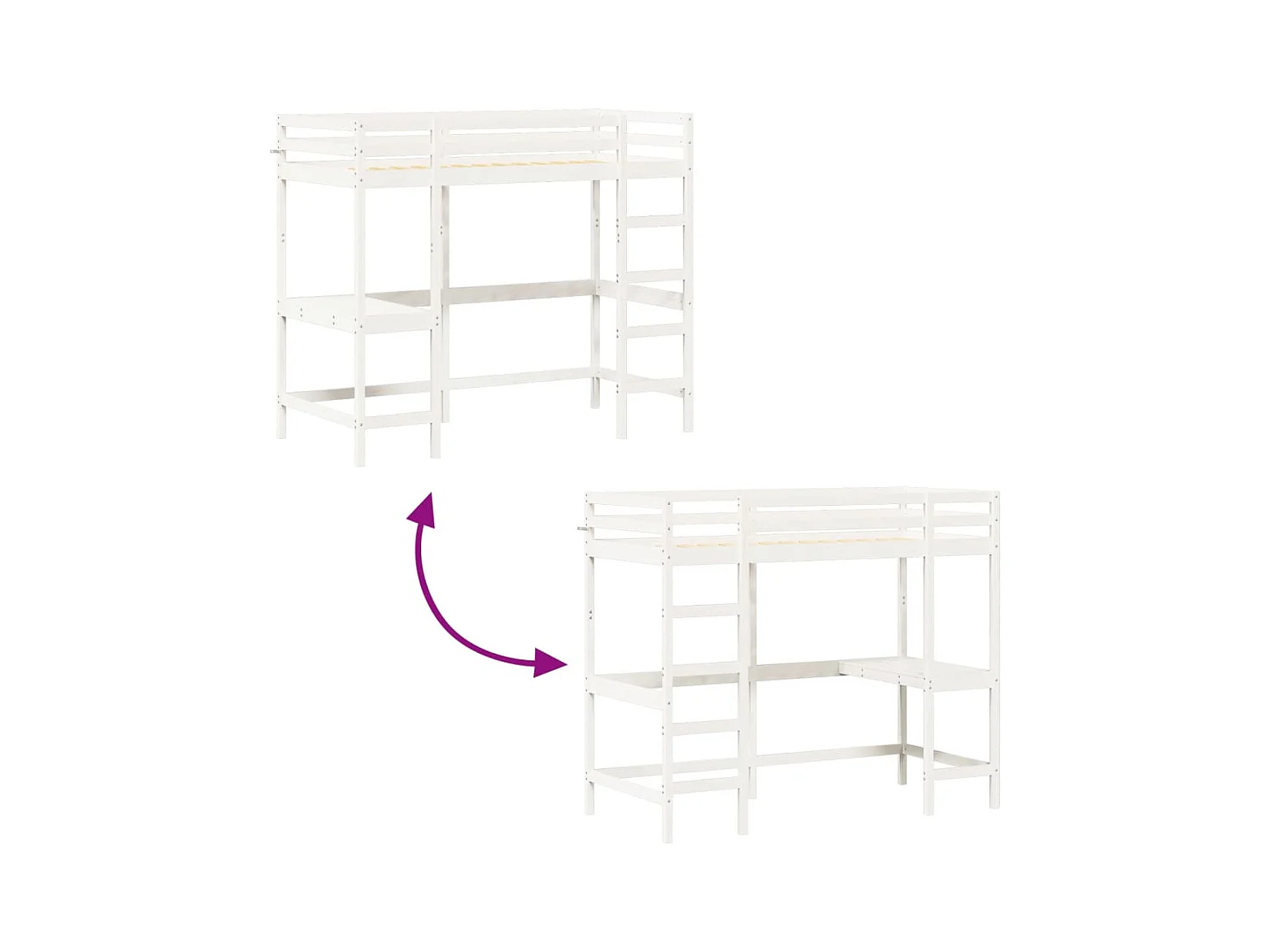 Hoogslaper met bureau massief grenenhout wit 90x190 cm NL82639