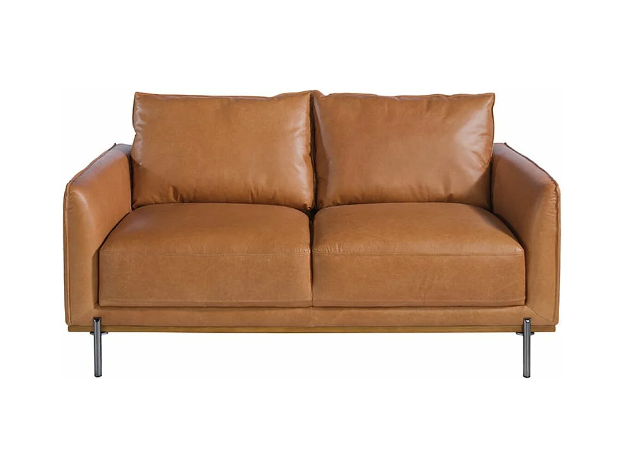 2-zits leren bank en zwarte RVS poten Yaro-Kleur Zwart Piel-leer