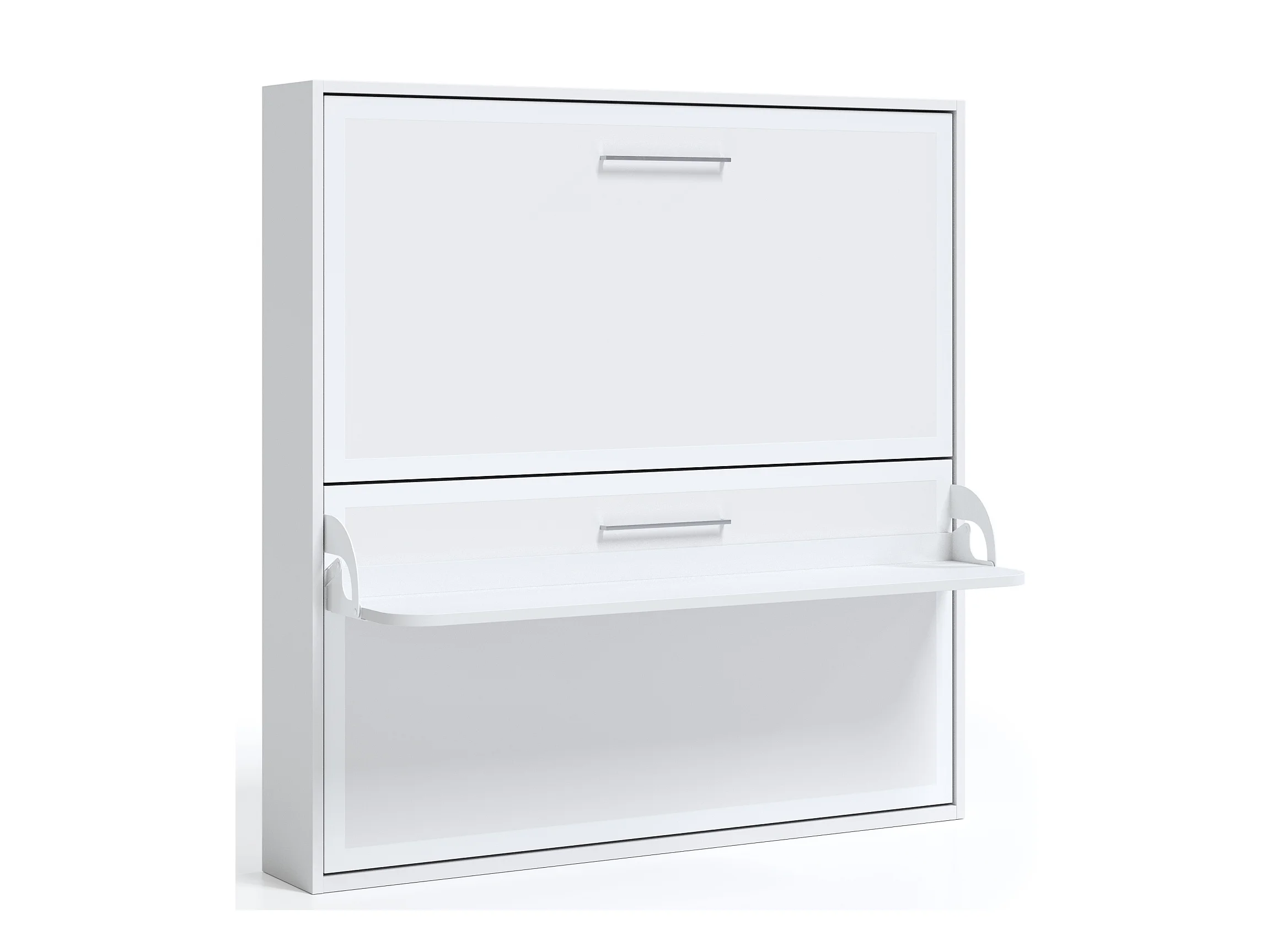 Horizontaal opklapbaar stapelbed 90x180 met gesynchroniseerde plank Studio High-end-2 matrassen-Bekisting Wit-Facade Cementgrijs