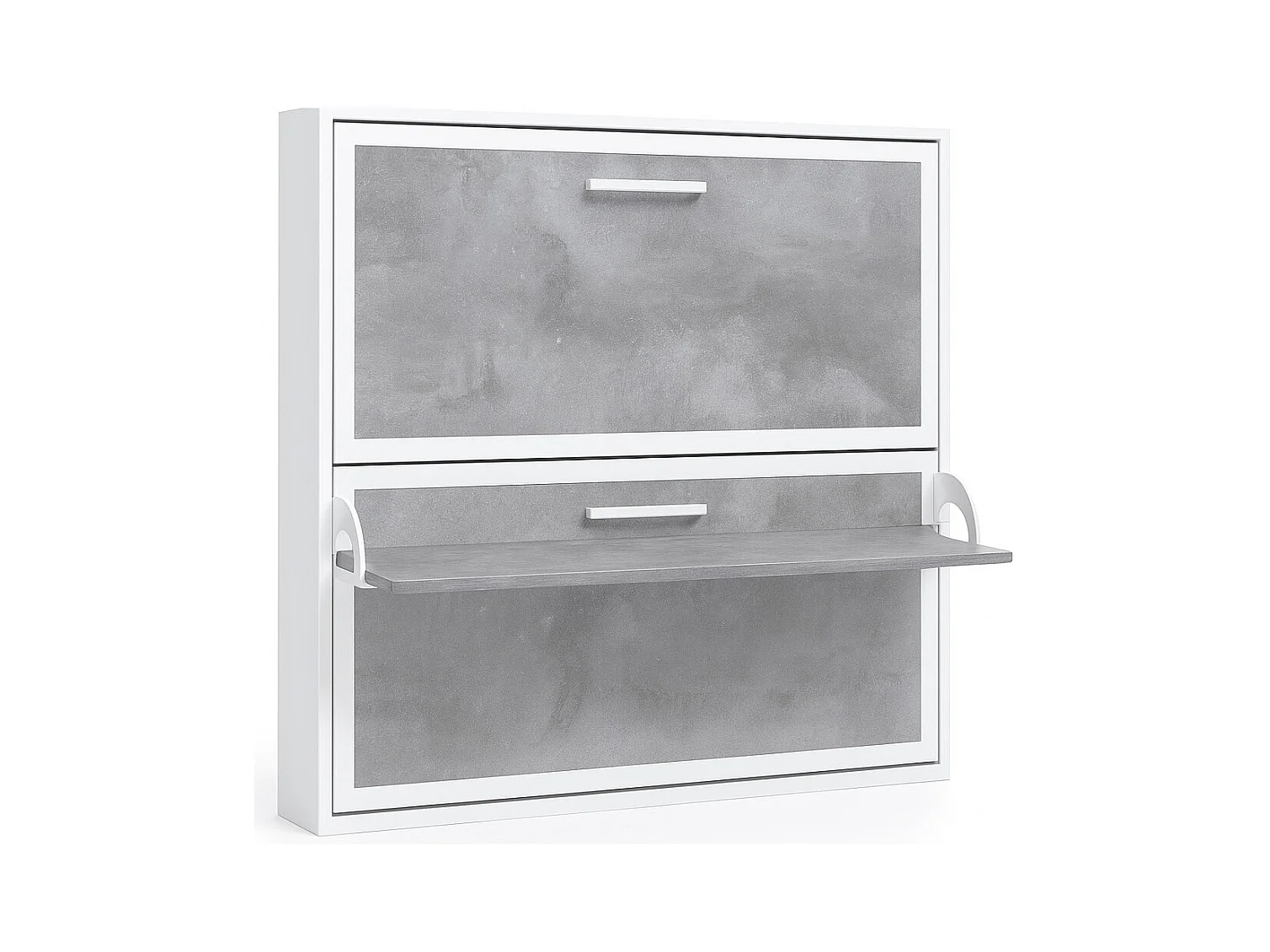 Horizontaal opklapbaar stapelbed 90x200 cm met gesynchroniseerde plank Studio High-end-Zonder matras-Bekisting Wit-Facade Cementgrijs