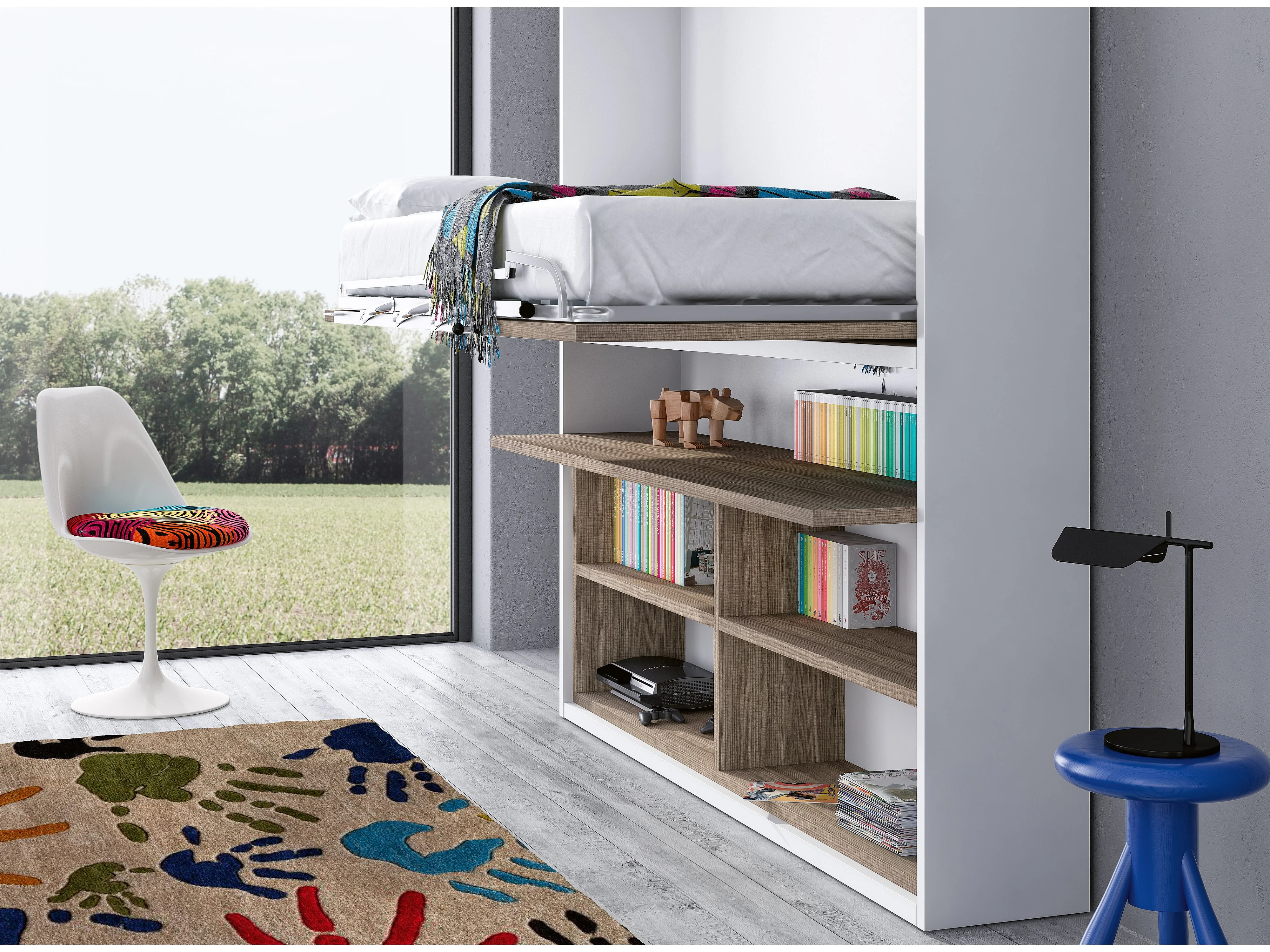 Horizontaal opklapbed 90x190 met opbergruimte en Laura bureau-Zonder matras-Bekisting Okkernoot-Facade Okkernoot