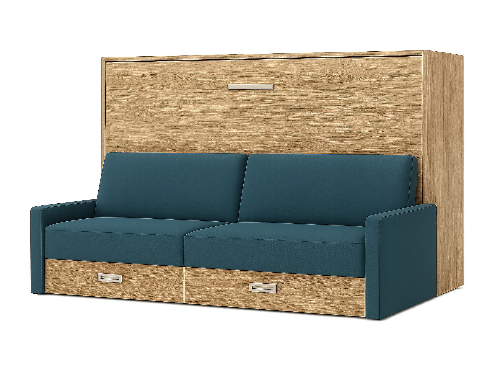 Horizontaal opklapbed met Vetal bank-105x190 cm-Bank Blauwe Eend-Structuur en gevel Licht eiken