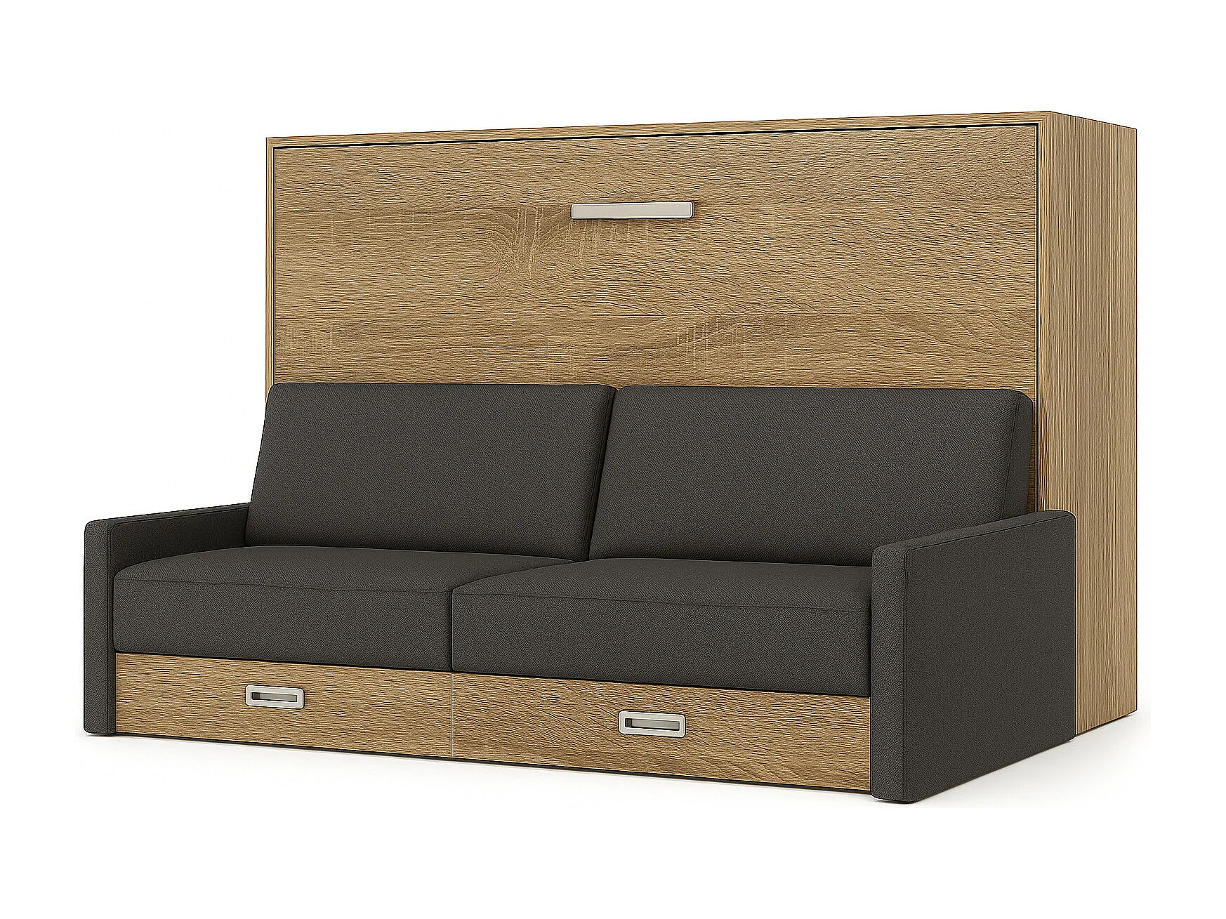 Horizontaal opklapbed met Vetal bank-Slapen 160x200cm-Bank Donkergrijs-Structuur en gevel Licht eiken