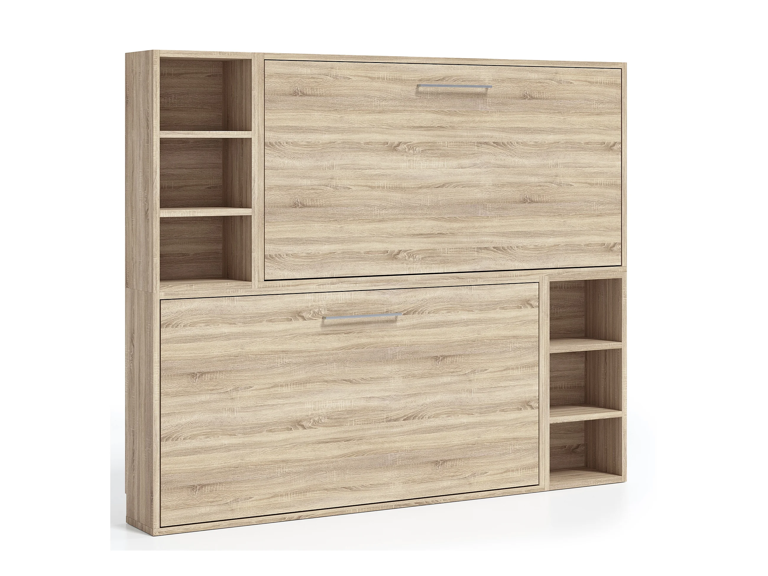 Horizontaal stapelbed voor 2 personen 80x200 met planken Binka-2 matrassen-Slapen 90x180cm-Bekisting 3D nerts-Facade 3D nerts