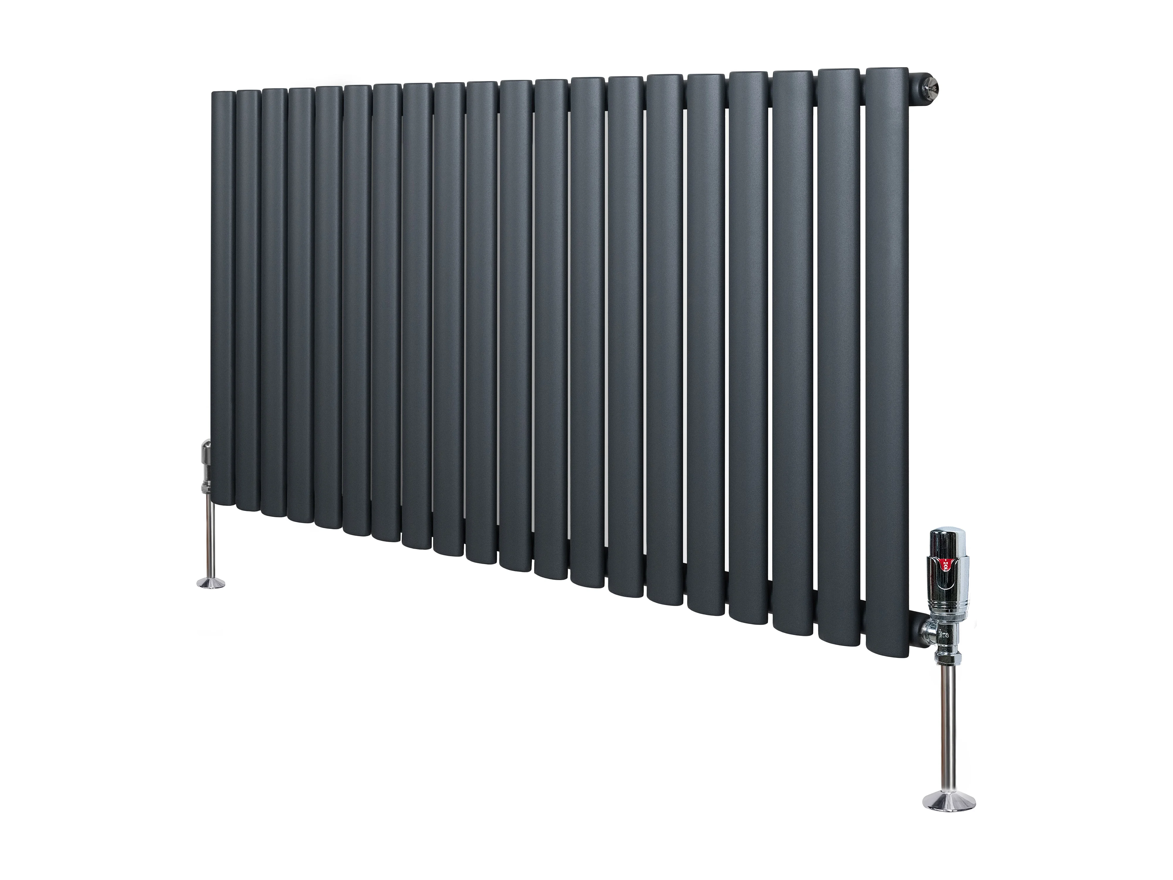 Horizontale design radiator ovaal 1 kolom - grijs 600x1200 mm thermostaatkraan