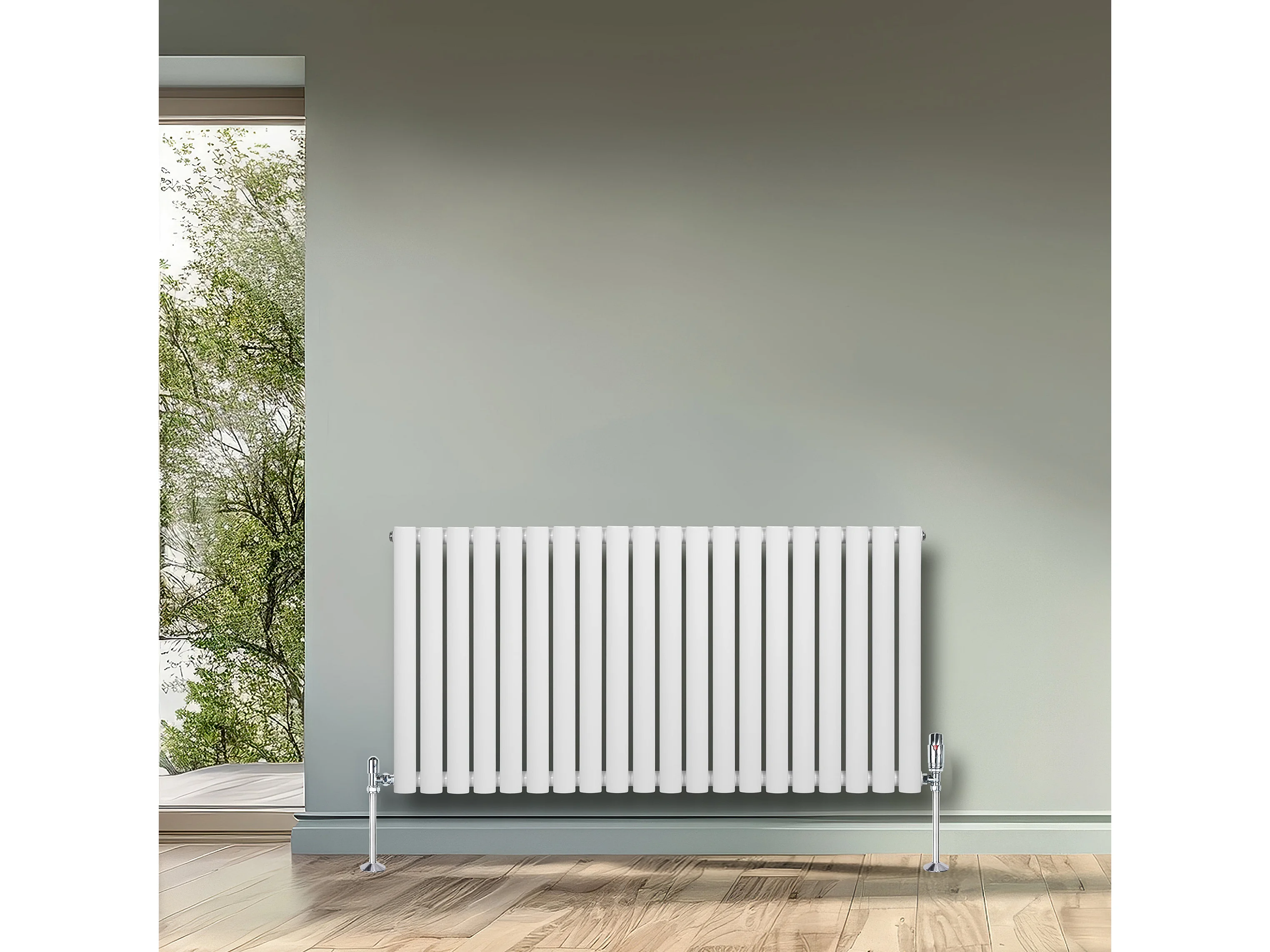 Horizontale design radiator ovaal 1 kolom - wit 600x1200 mm thermostaatkraan