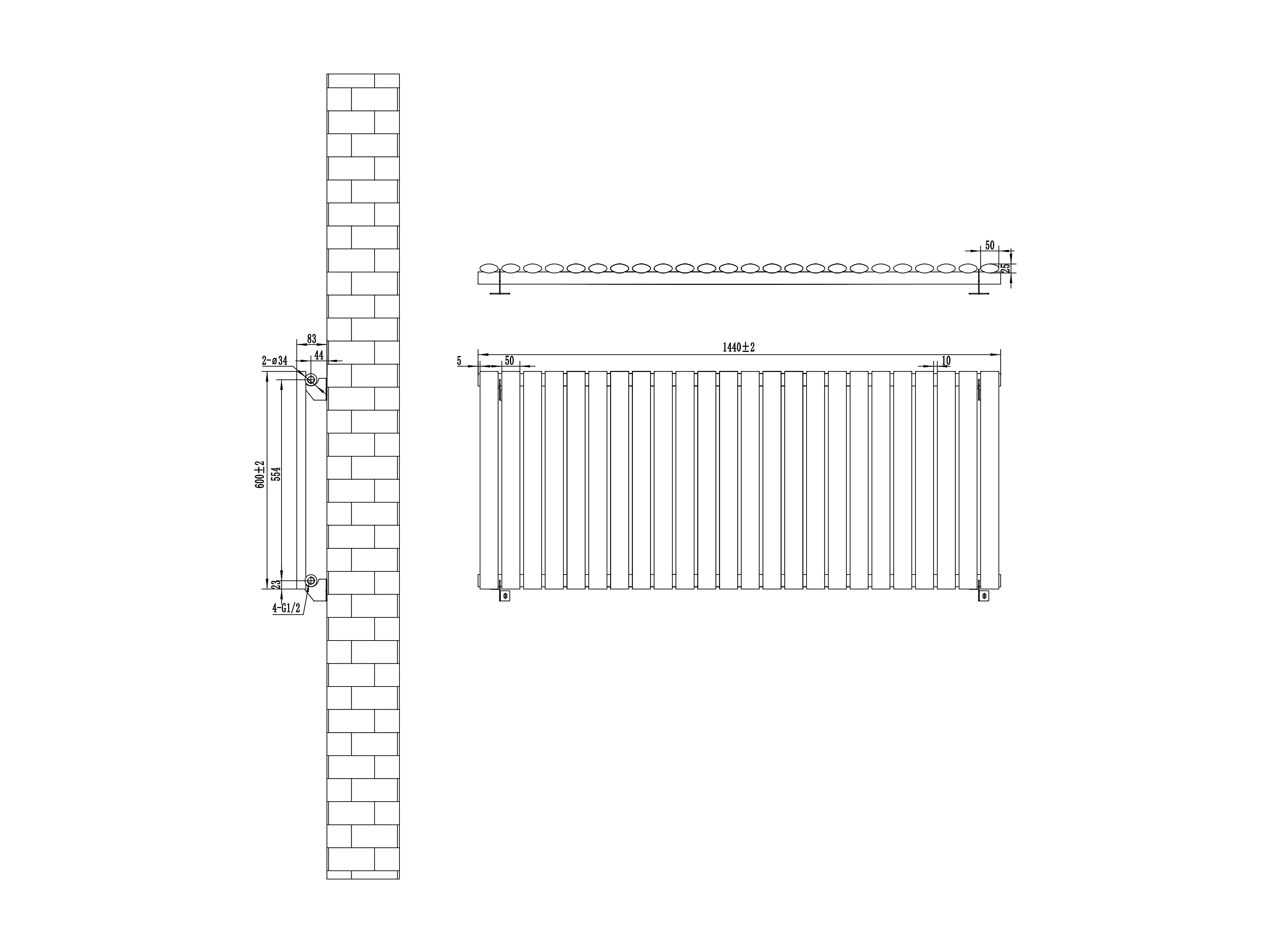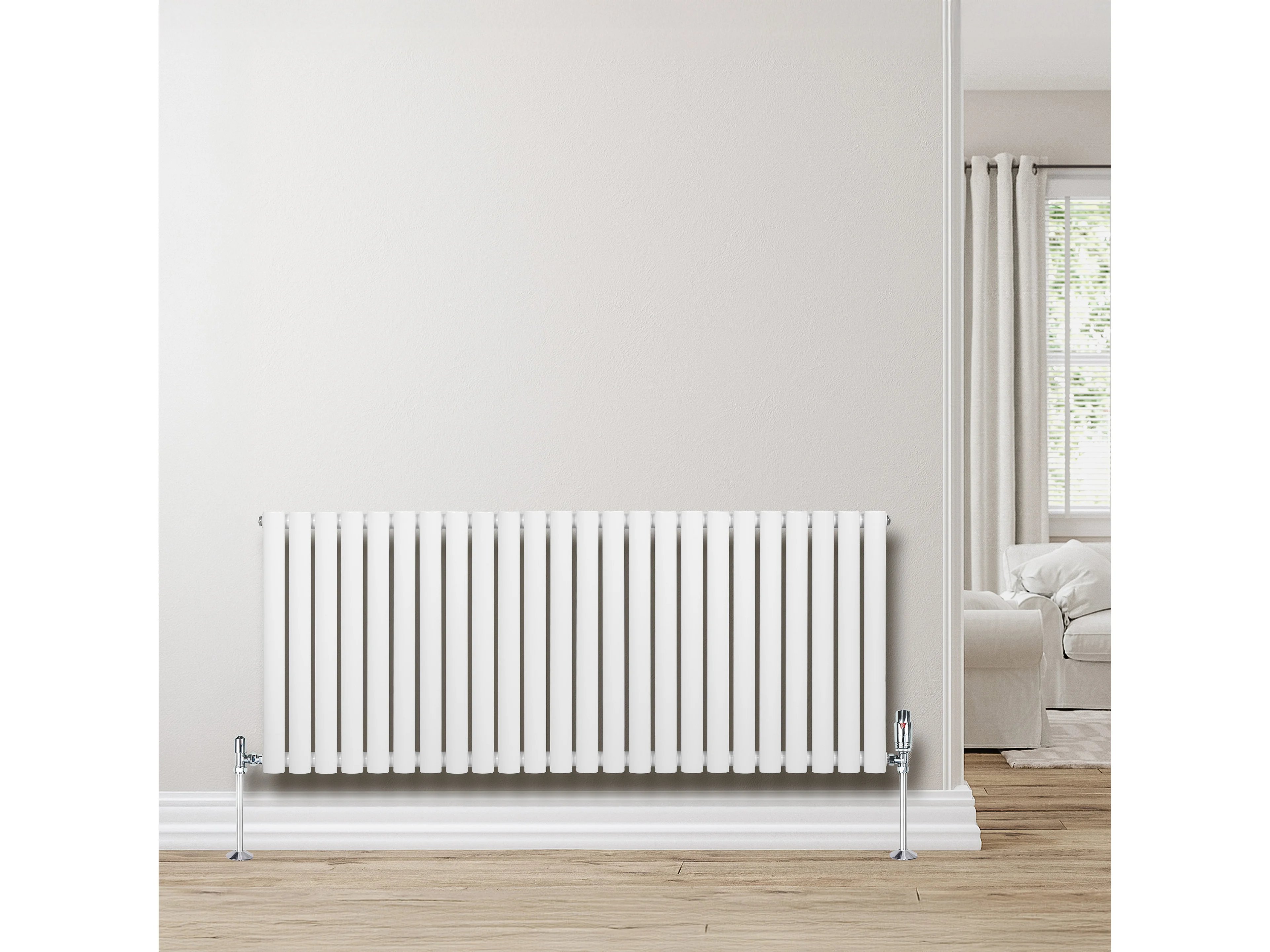 Horizontale design radiator ovaal 1 kolom - wit 600x1400 mm thermostaatkraan
