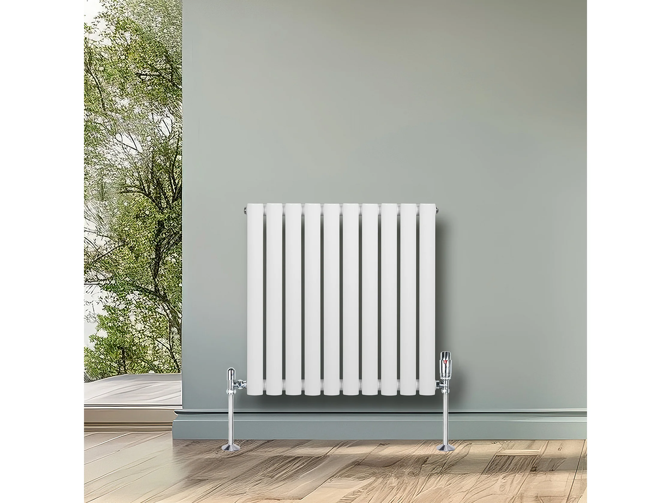 Horizontale design radiator ovaal 1 kolom - wit 600x600 mm thermostaatkraan