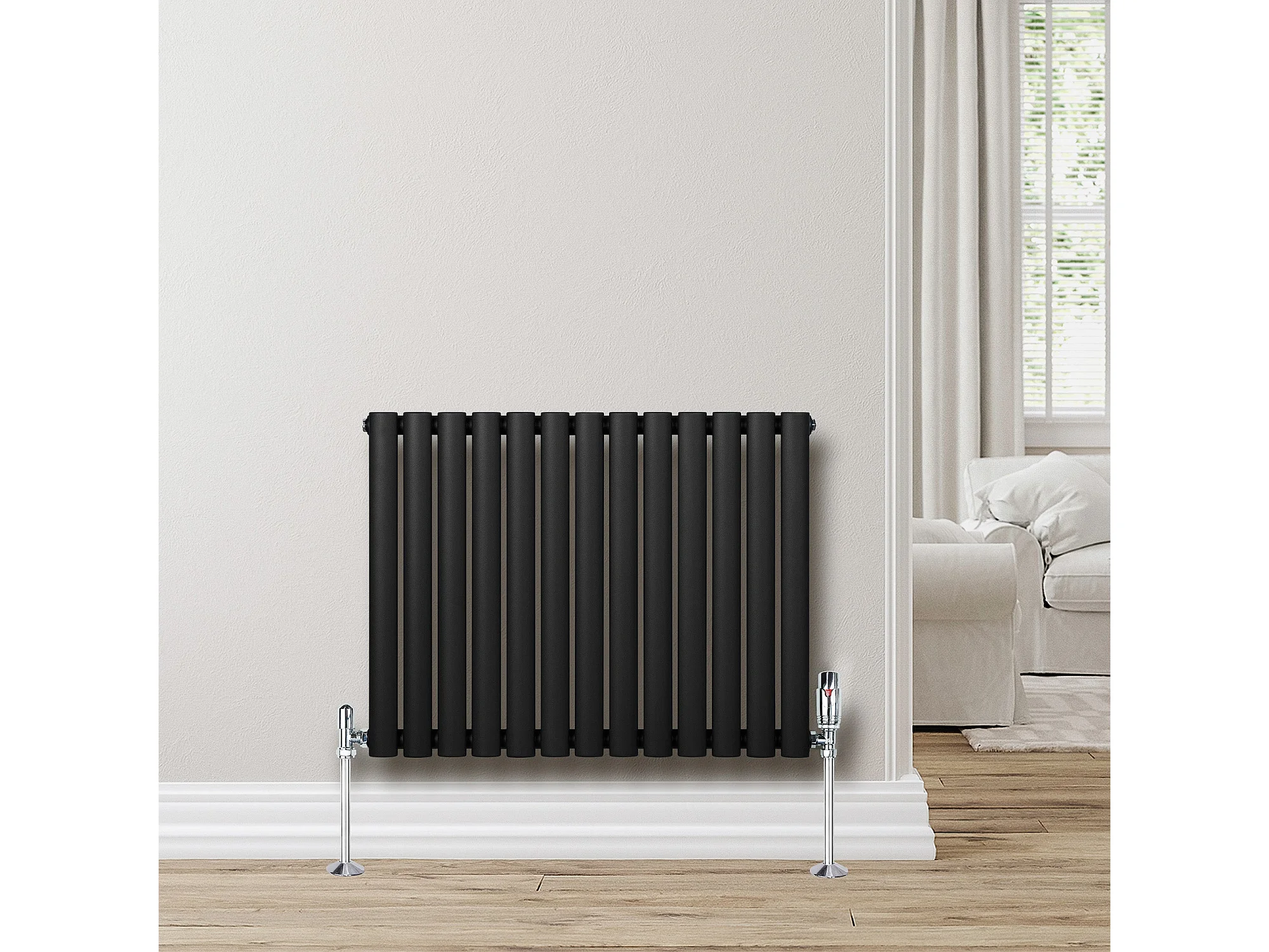 Horizontale design radiator ovaal 1 kolom - zwart 600x780 mm thermostaatkraan