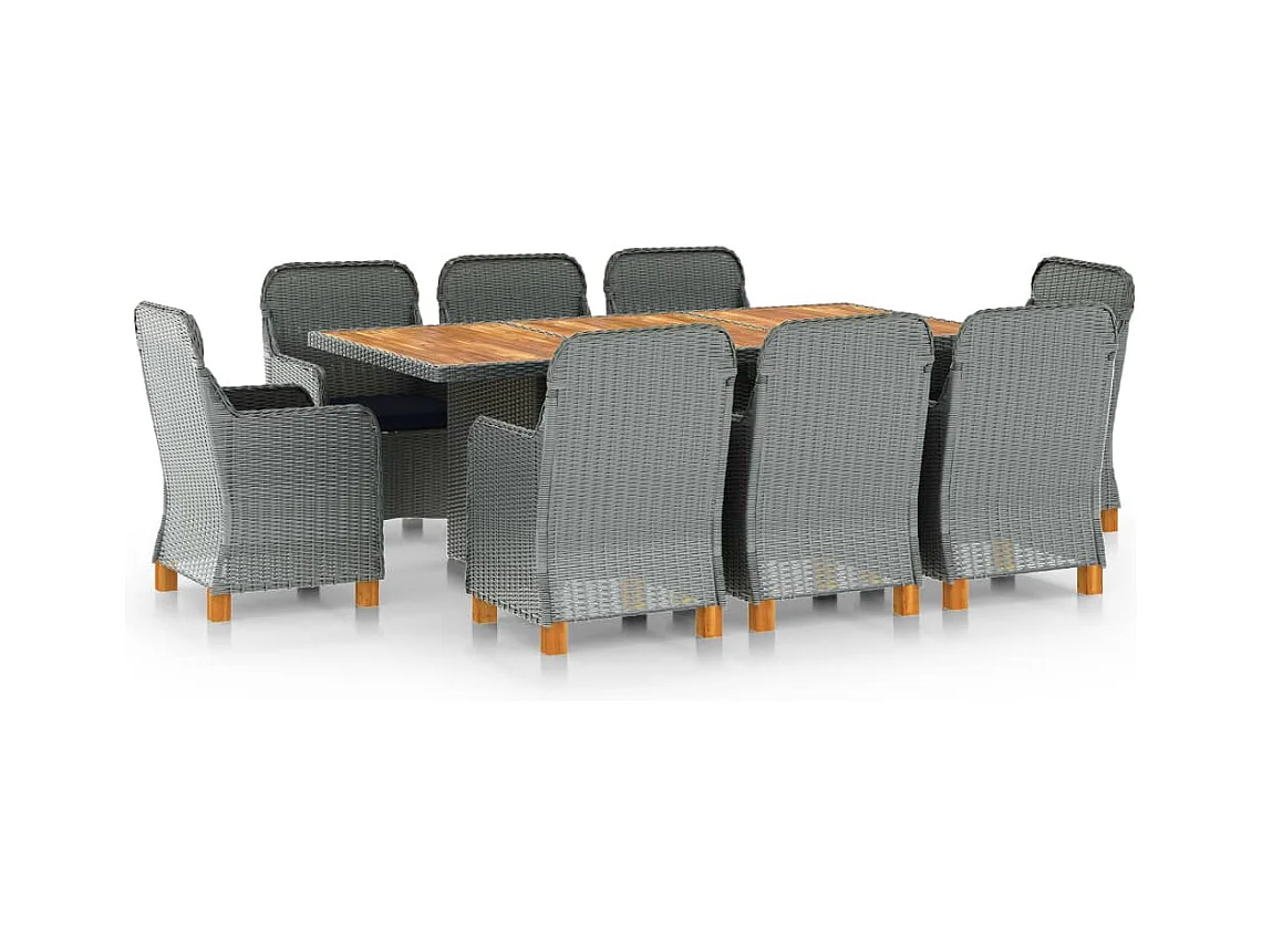Valric 9-delige Tuinset met kussens poly rattan grijs
